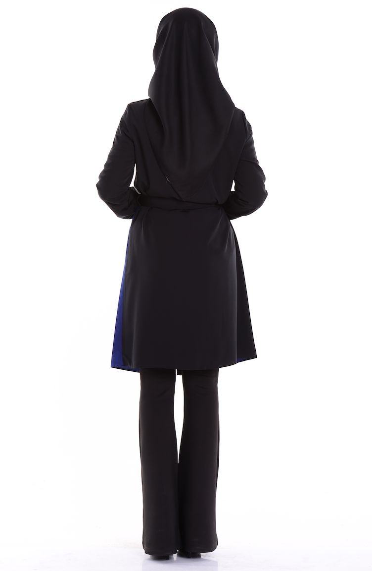 Saxon blue color is used. It has a plain appearance. Belt detail has used for a stylish look. The pointed collar adds a distinctive visual to the clothes. Suitable for 4 seasons. The size worn by the model, is the one on the image.