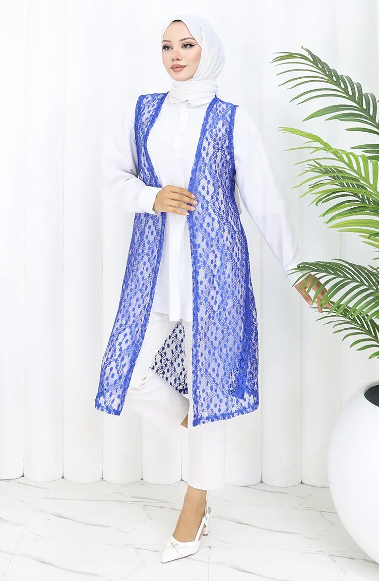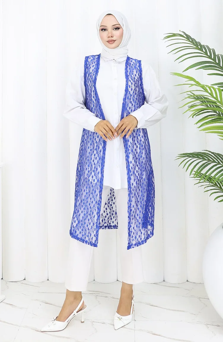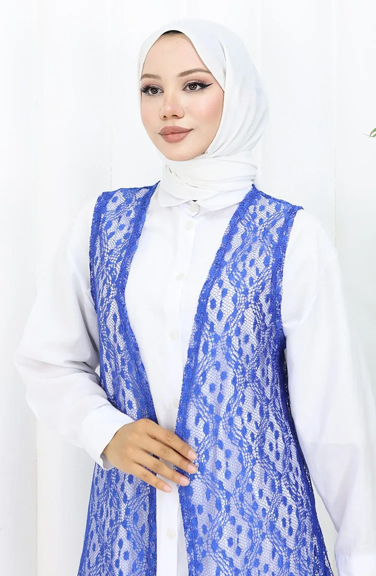 Dantelli Dar Kesim Yelek 8761-04 Saks 8761-04