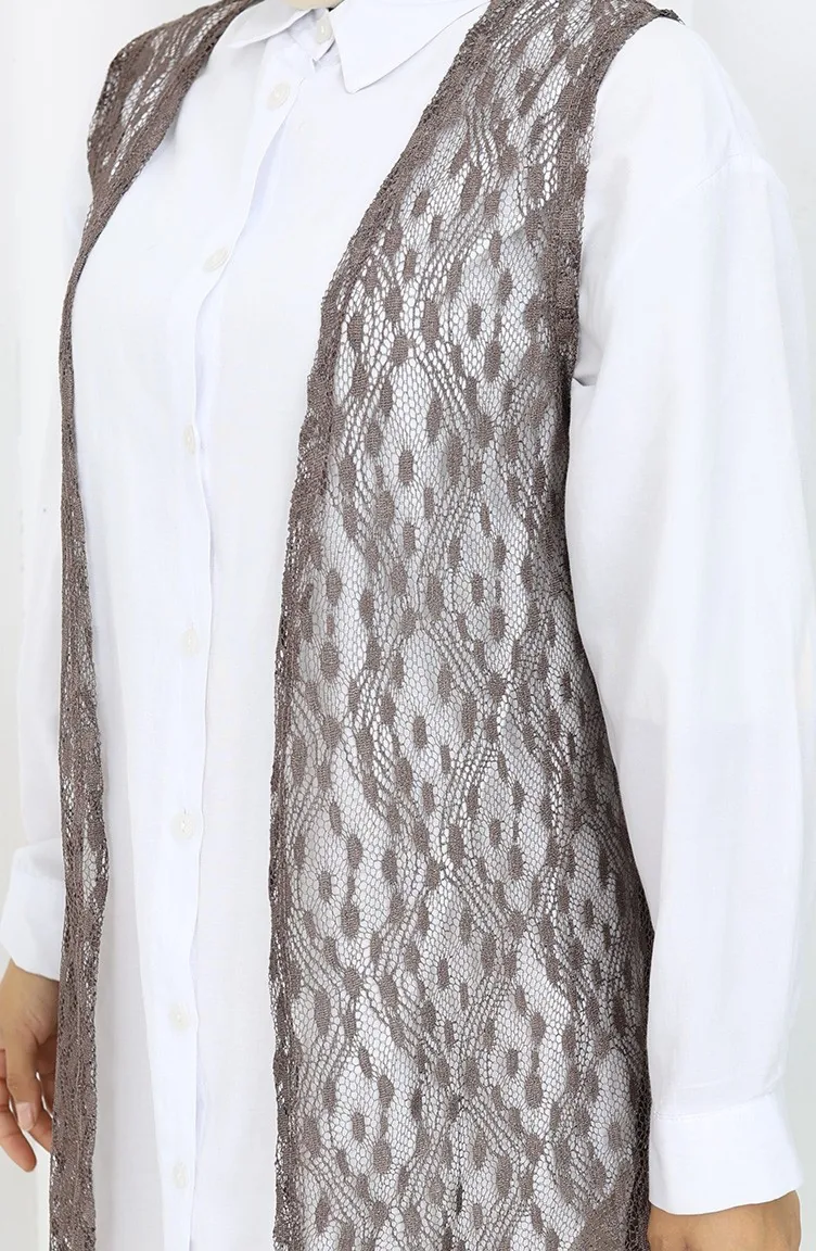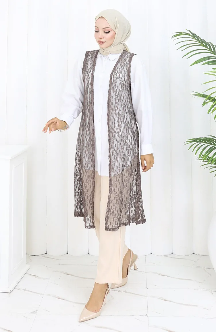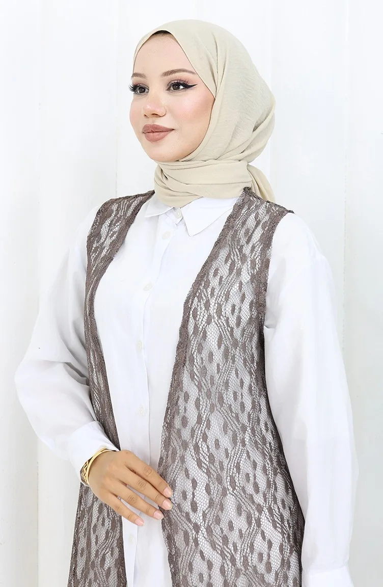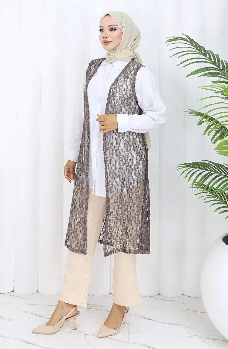 Dantelli Dar Kesim Yelek 8761-05 Sütlü Kahve 8761-05
