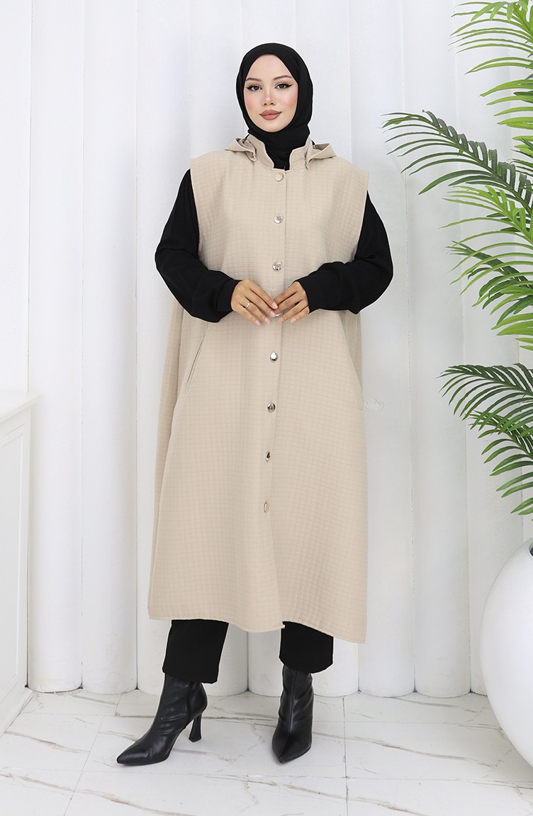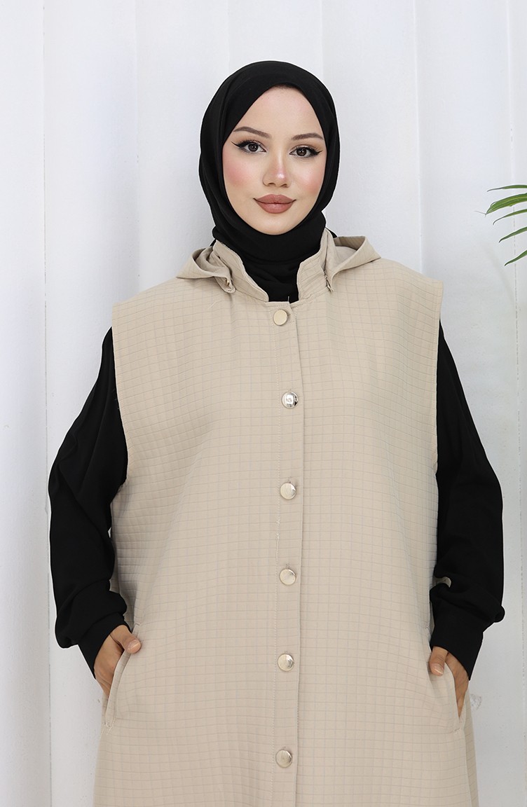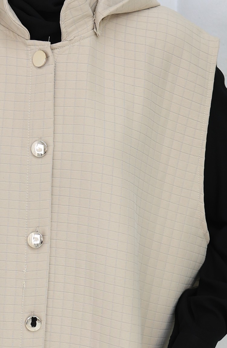 Quilted Fabric Buttoned Vest 0186-05 Beige 0186-05