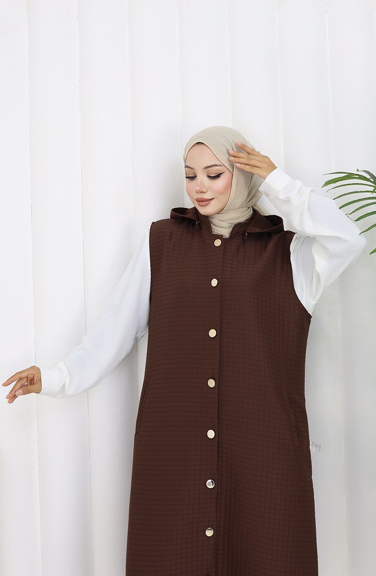 Quilted Fabric Buttoned Vest 0186-07 Brown 0186-07