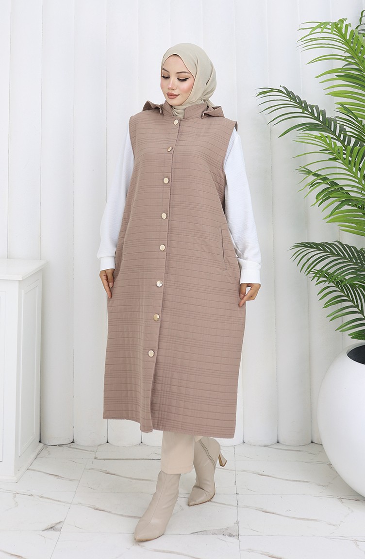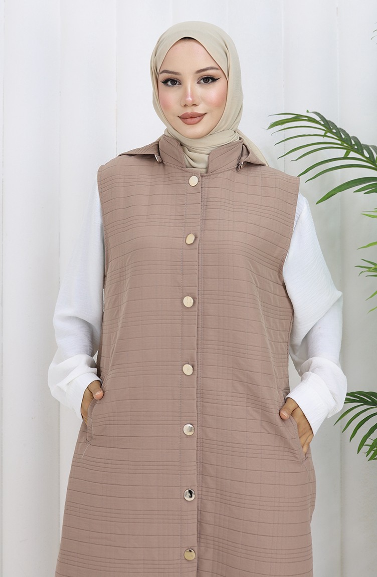 Quilted Fabric Buttoned Vest 0186-08 Mink 0186-08