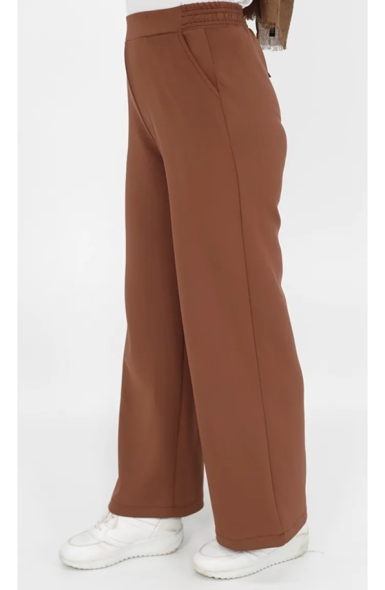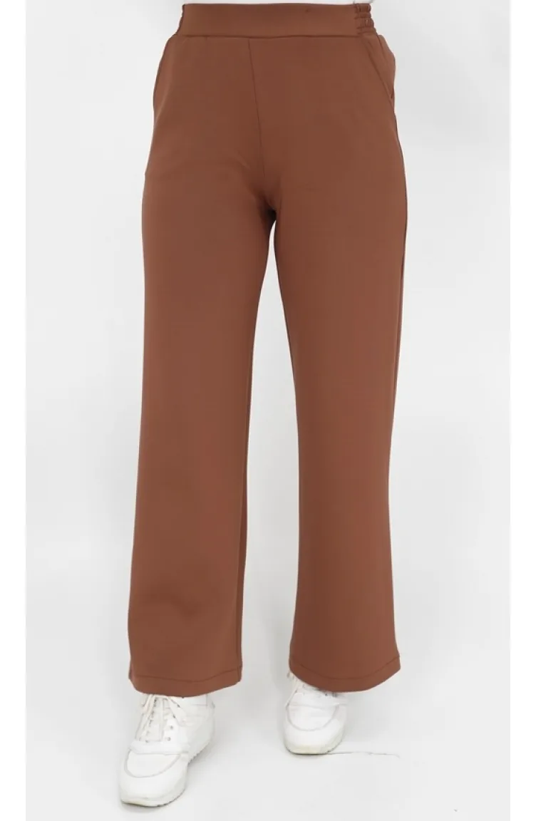 Noktae Scuba Fabric Wide Leg Trousers 18151-01 Brown 18151-01