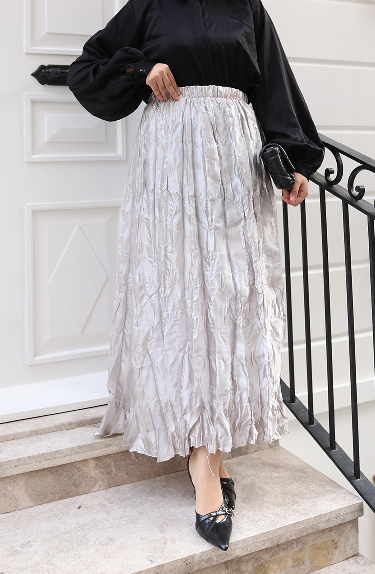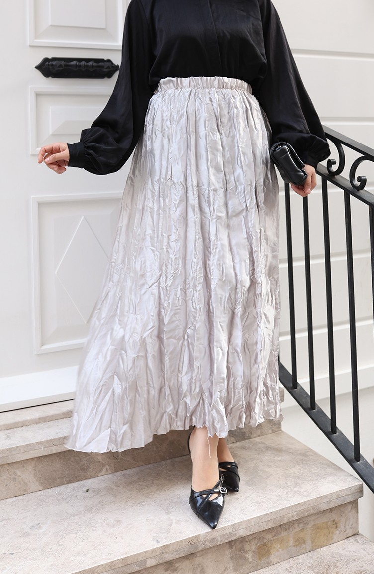 Relaxed Fit Satin Skirt With Elastic Waistband 0227B-01 Grey 0227B-01