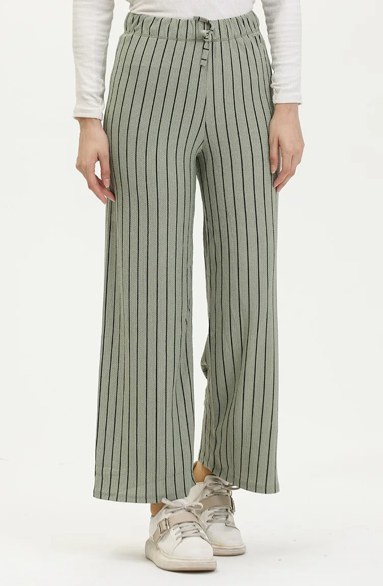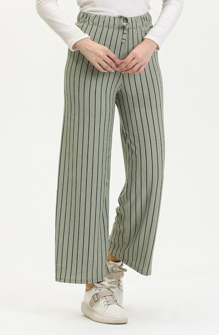 Wide-Leg Comfortable Fit Plain Crinkle Pants 8731-04 Green 8731-04