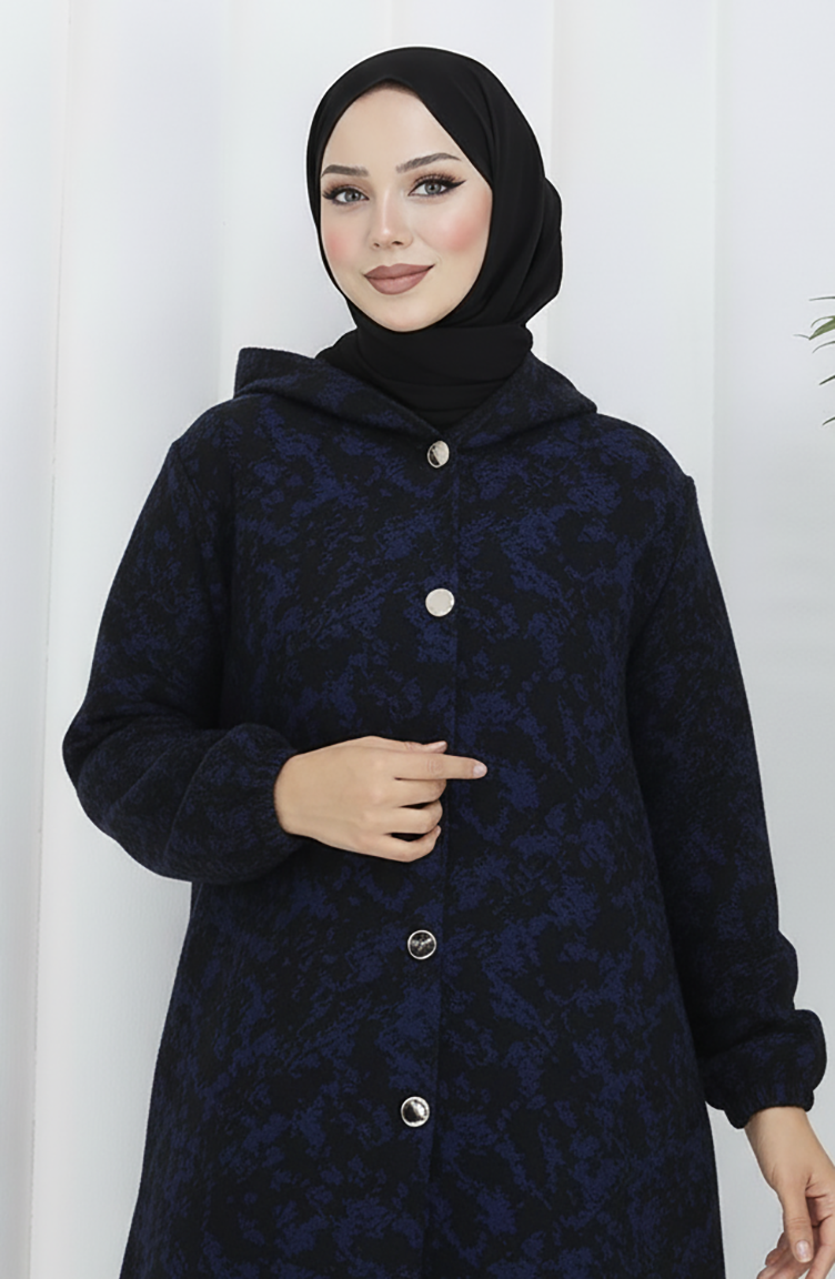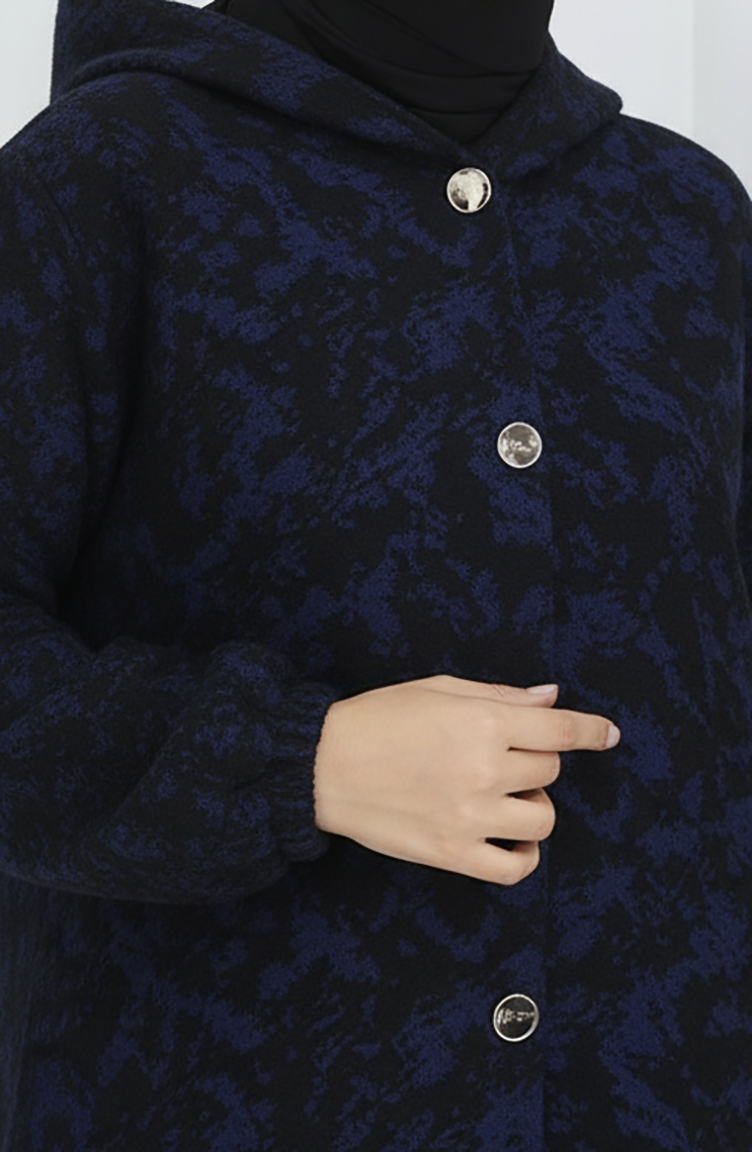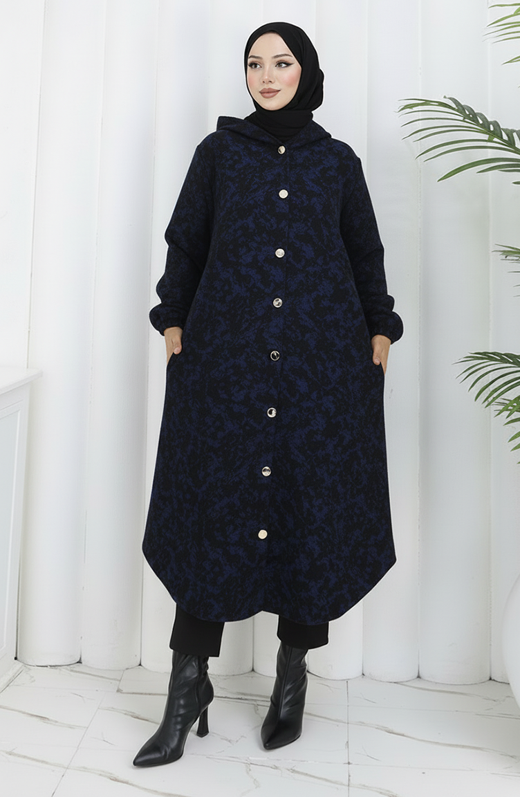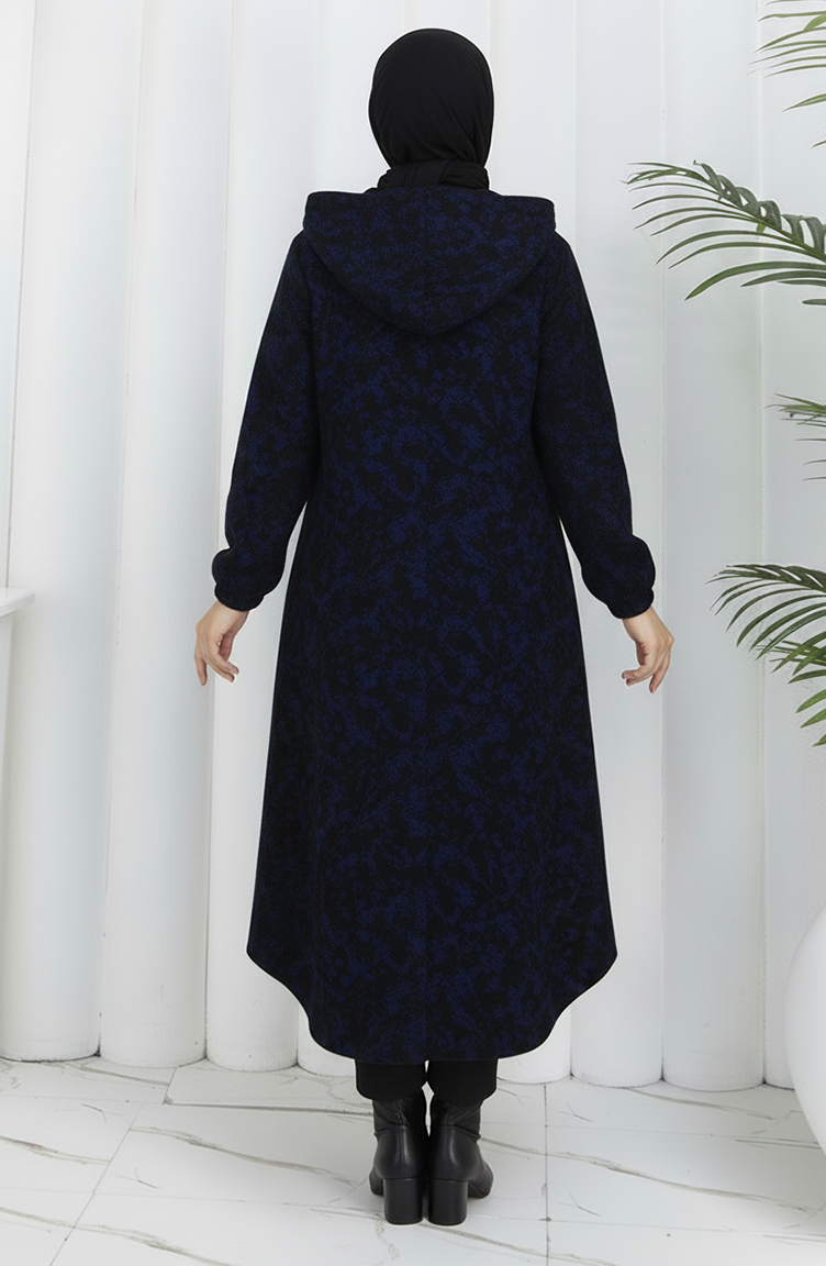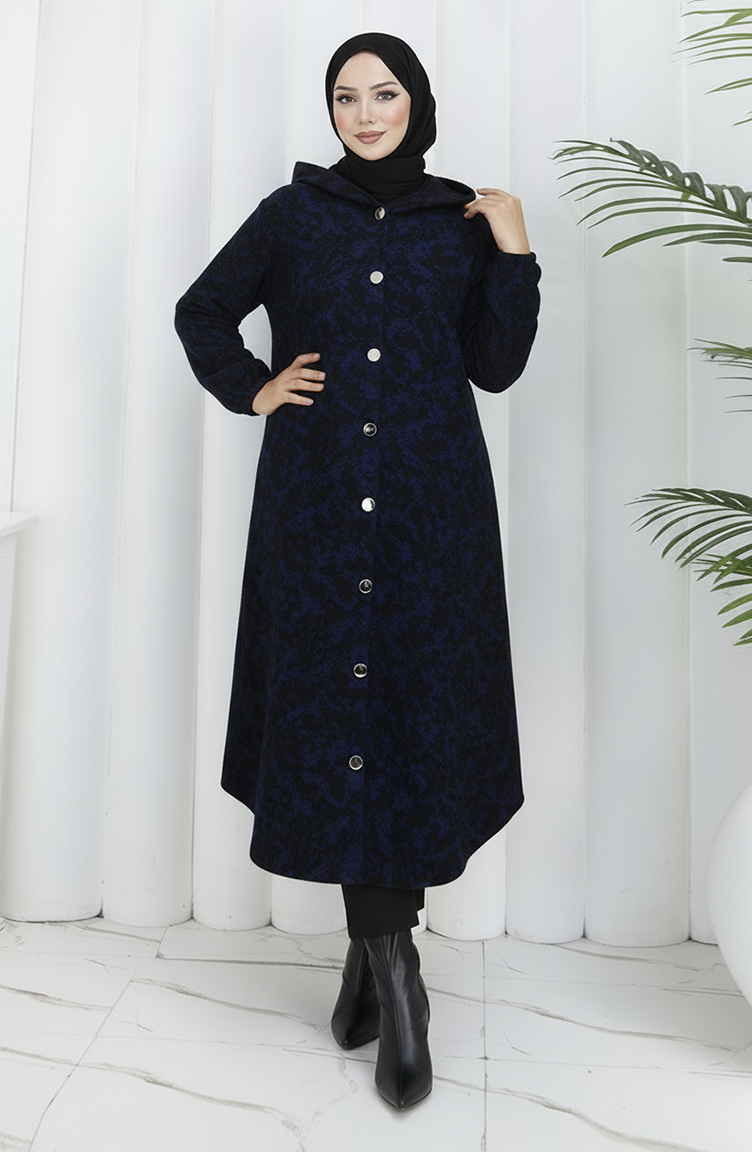 Patterned Hooded Cashmere Coat 0187A-05 Black Saxe 0187A-05