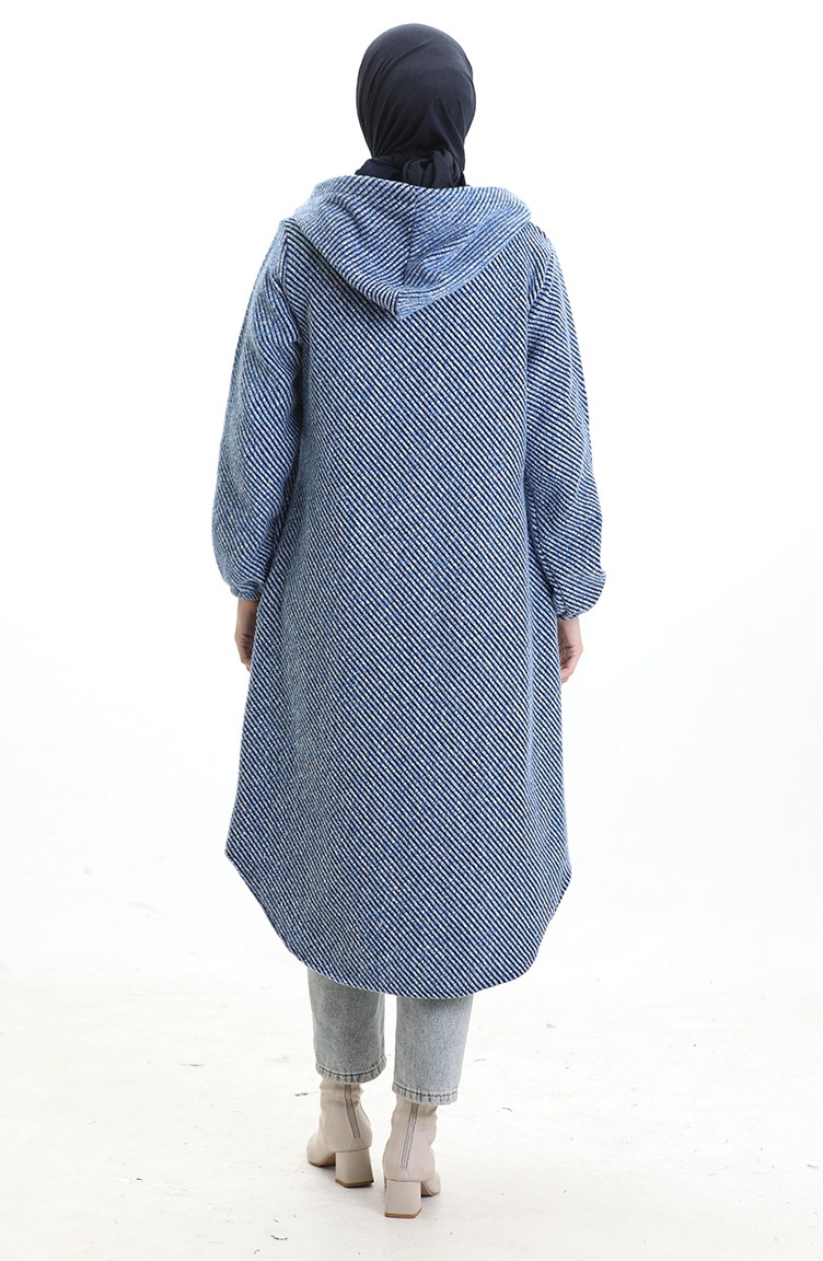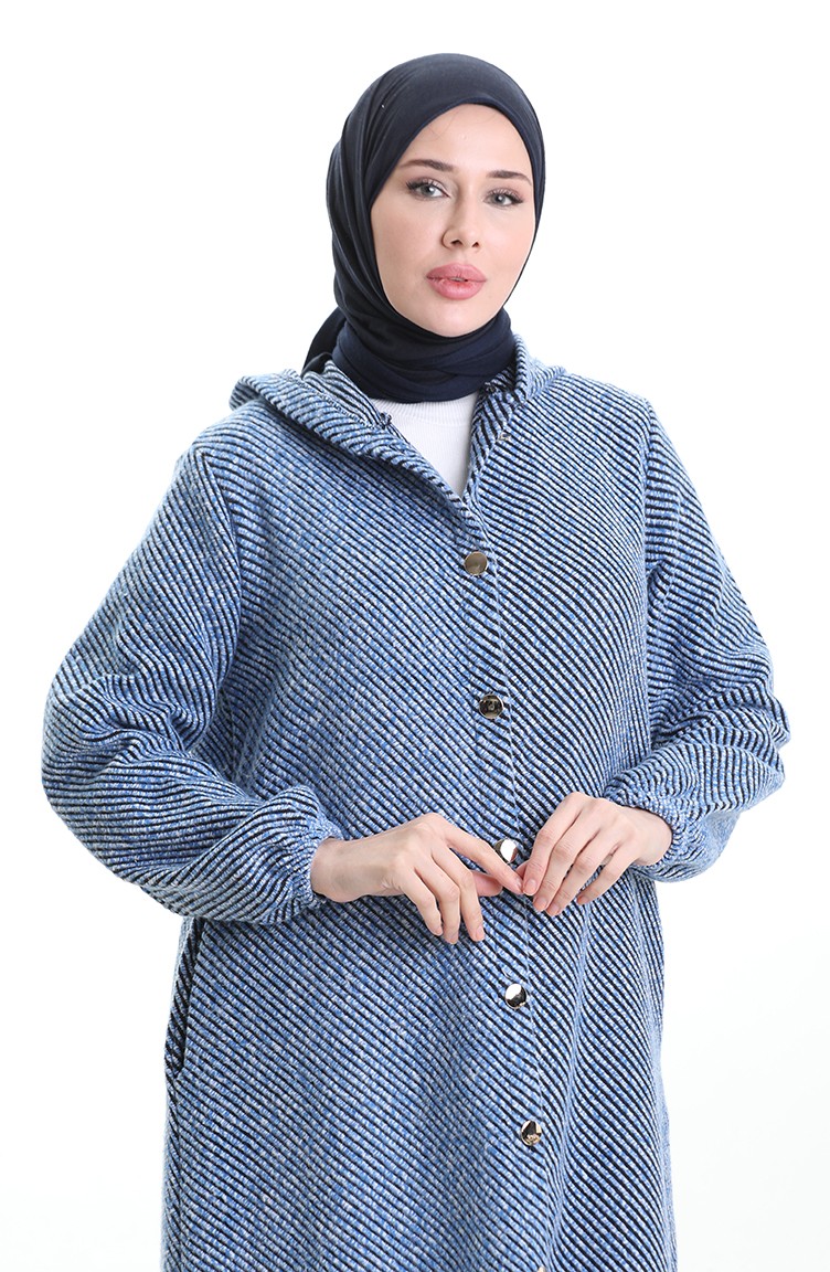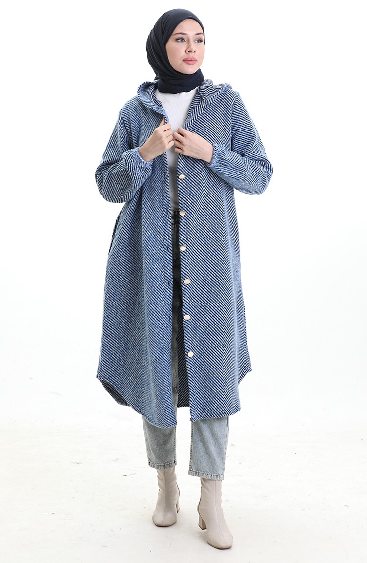 Hooded Buttoned Cashmere Coat 0201-02 Indigo 0201-02