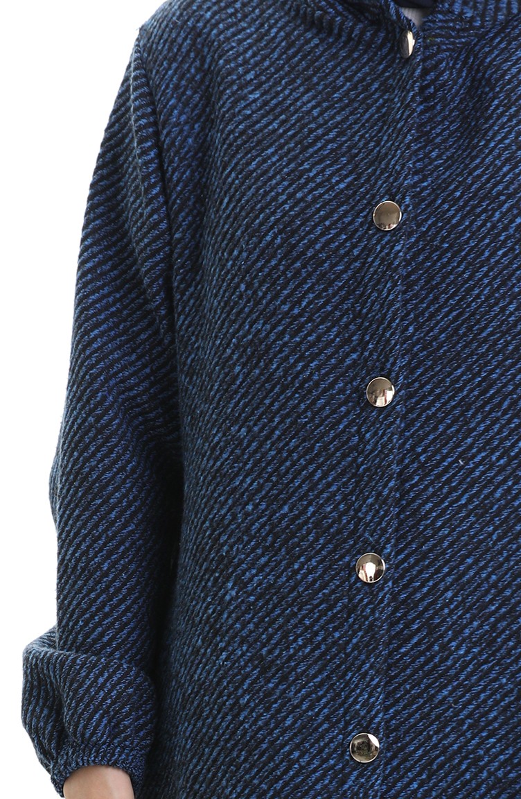 Saxon blue color is used. Polyester fabric often prevents wrinkling. Designed with a striped fabric. Buttons have been used to make it easy to use. It's made of elastic sleeves. Designed from thick fabric. The size worn by the model, is the one on the image.
