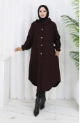 Saxon blue color is used. It is cachet fabric, you can use it easily in winter. Designed with patterned fabric. It's made of elastic sleeves. Designed from thick fabric. The size worn by the model, is the one on the image.