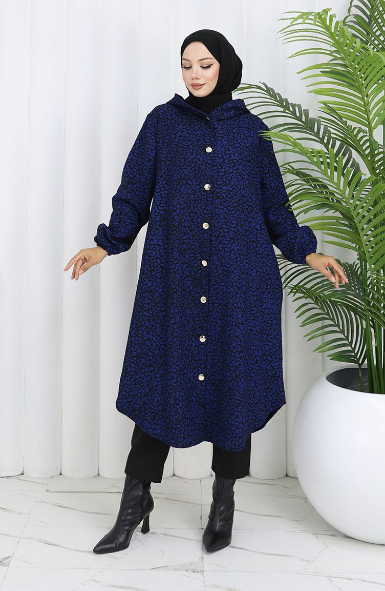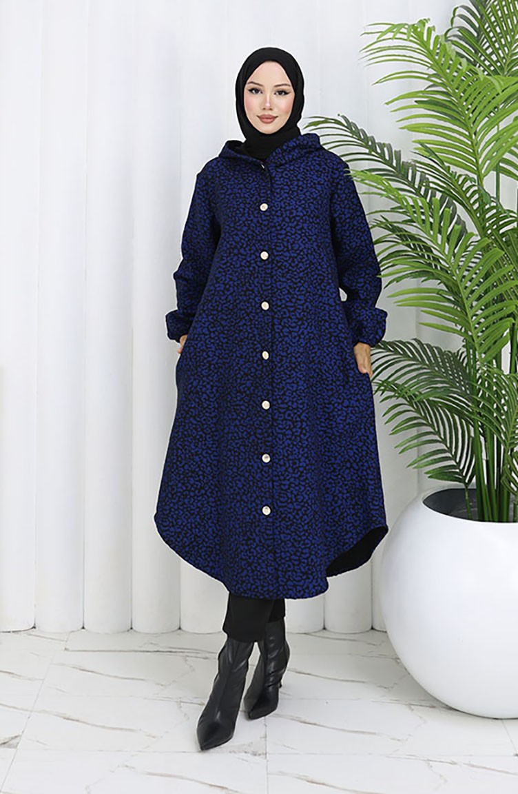 Leopard Pattern Hooded Cashmere Coat 0187-03 Saks Black 0187-03