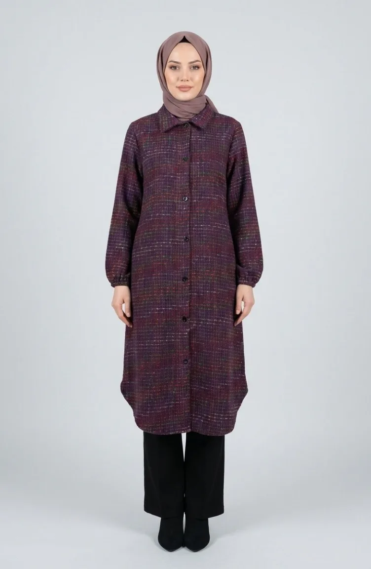 The plaid lumberjack coat, one of the most popular pieces of the winter season, has been redesigned with Sefamerve's signature quality. Designed with the warmth of camel tones and the timeless elegance of classic plaid patterns, this product combines comfort and grace for women who embrace a modest clothing style.Product Features:Fabric: High-quality polyester blend, pill-resistant lumberjack fabric.Design: Full-length buttoned structure, wide collar detail, and functional side pockets.Fit: Provides freedom of movement all day long thanks to its relaxed cut.Season: Ideal as a protective layer during the autumn and winter months.Styling Suggestion: You can complete your daily elegance by combining this winter coat with a cream-colored shawl, slim-fit trousers, and camel boots. Its polyester texture provides protection against the wind and keeps your body temperature balanced. This piece, which makes a difference in the modest outerwear category, adapts to both sporty and classic combinations. It is easy to clean and maintains its shape for a long time.