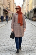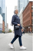 Indigo color is used. Polyester fabric often prevents wrinkling. Designed with patterned fabric. Buttons have been used to make it easy to use. It's made of elastic sleeves. Designed from thick fabric. Plus size option available.