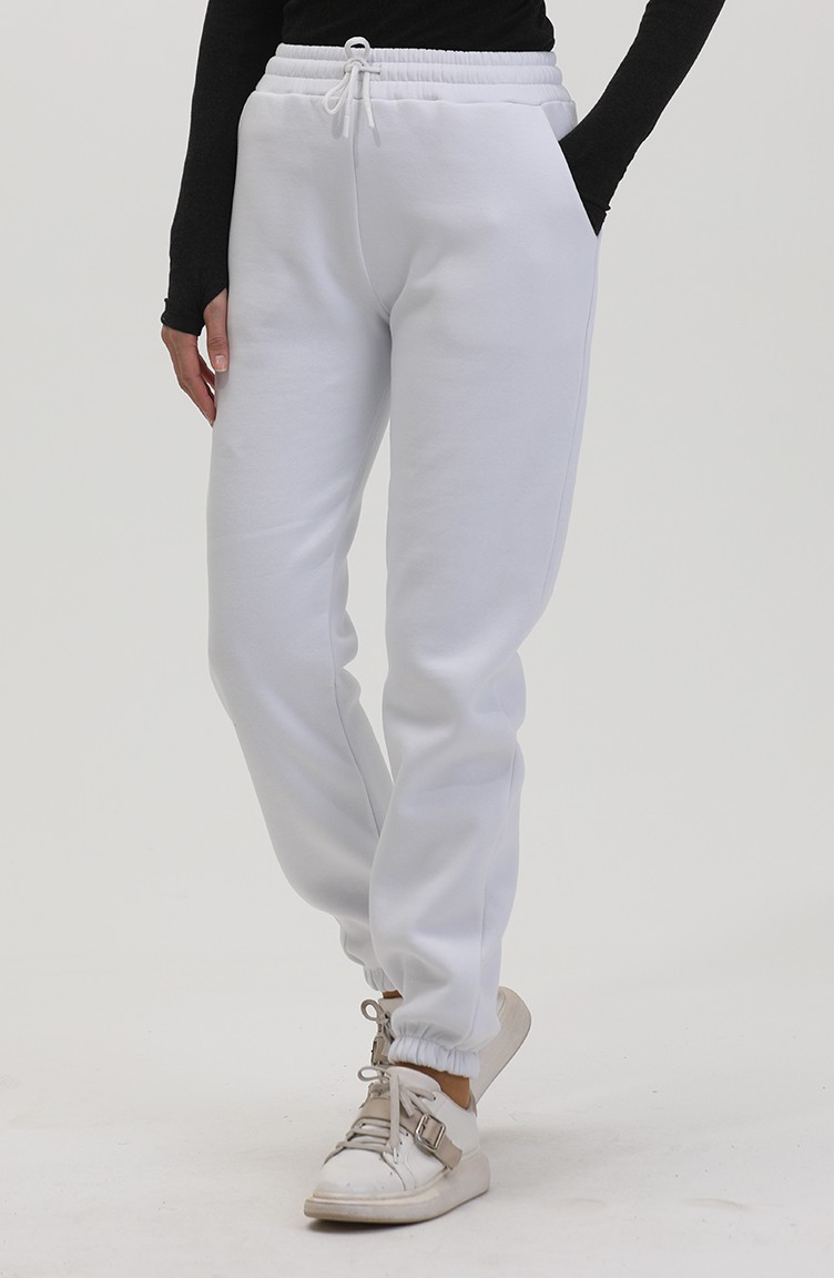 Üç İplik Penye Eşofman Altı 10400-07 Beyaz