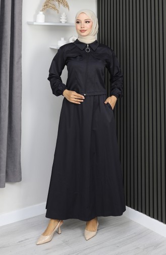 Siyah renktedir. Pamuk dokuma kumaş. Sade. Fermuarlı. Lastik kollu. Gömlek yaka detayı ile kullanışlı modeldir. 4 Mevsim tercih edebilirsiniz. Mankenin giydiği beden ölçüsü'dür.