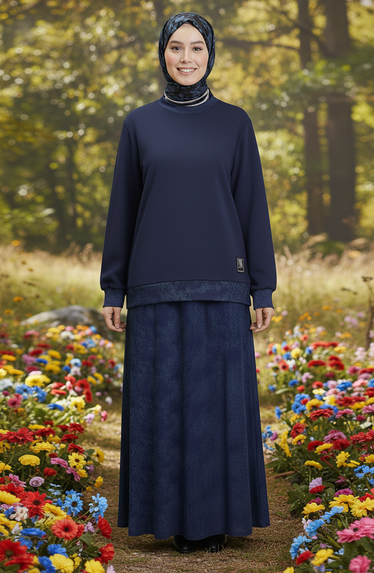 Oysho Kumaş Desenli Etekli Tesettür Takım 0218-03 Kahverengi