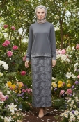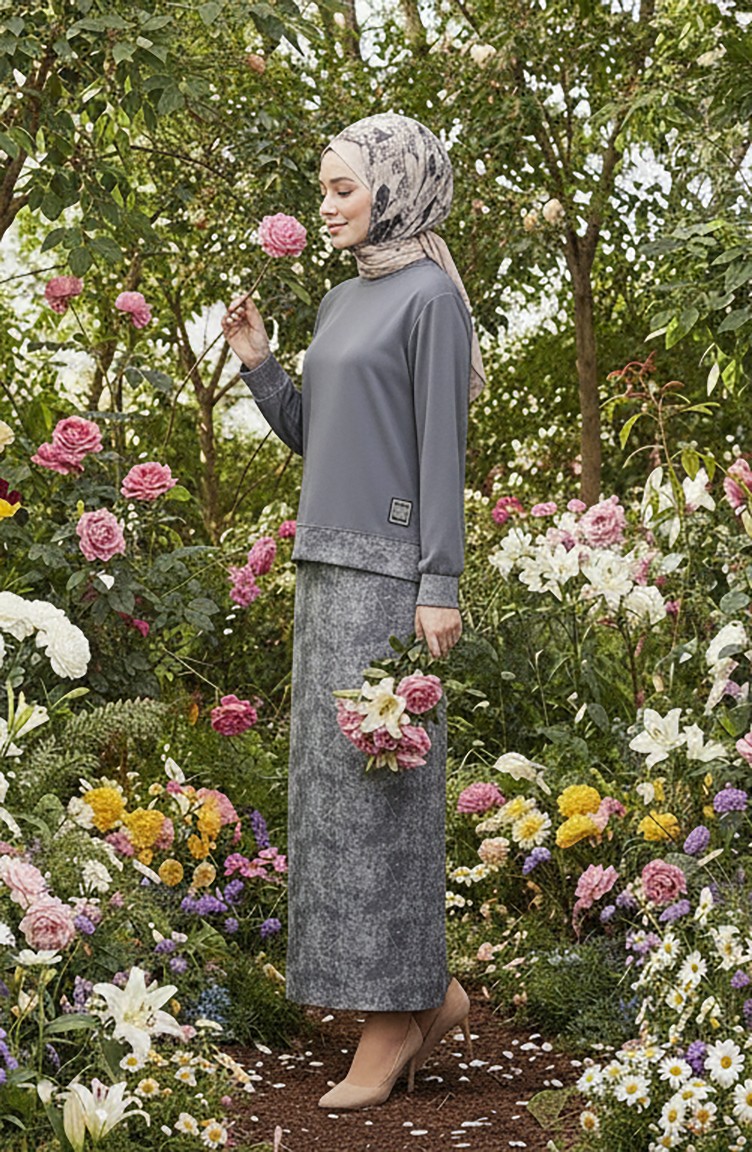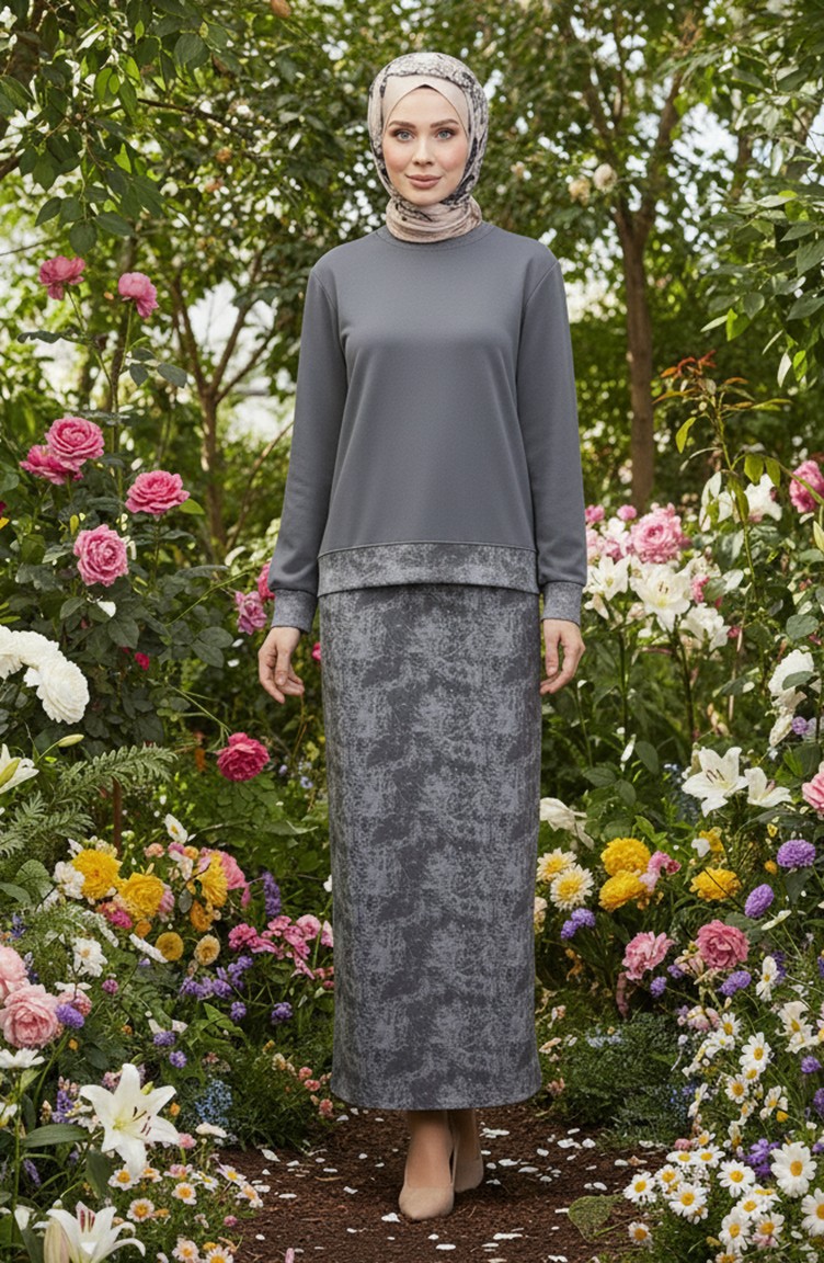 Oysho Kumaş Desenli Etekli Tesettür Takım 0218-04 Antrasit