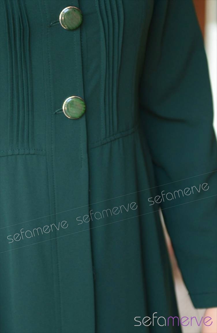 Koyu Yeşil renktedir. Medine ipeği kullanılmıştır. Sade. Astarsız. Uzun kolludur. Hakim yaka detayı ile kullanışlı modeldir. Standart.