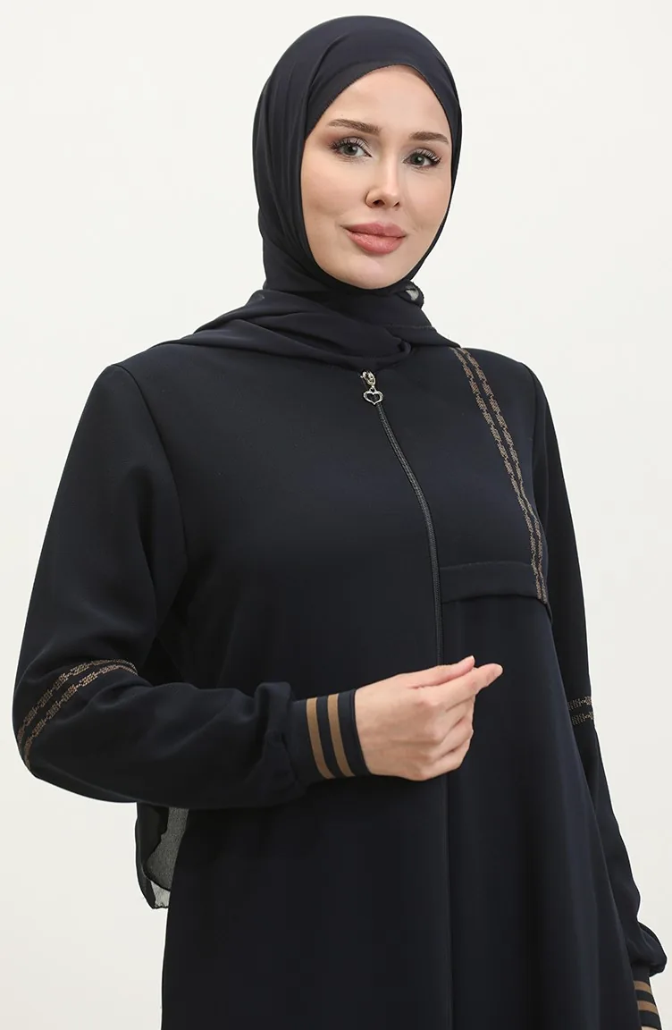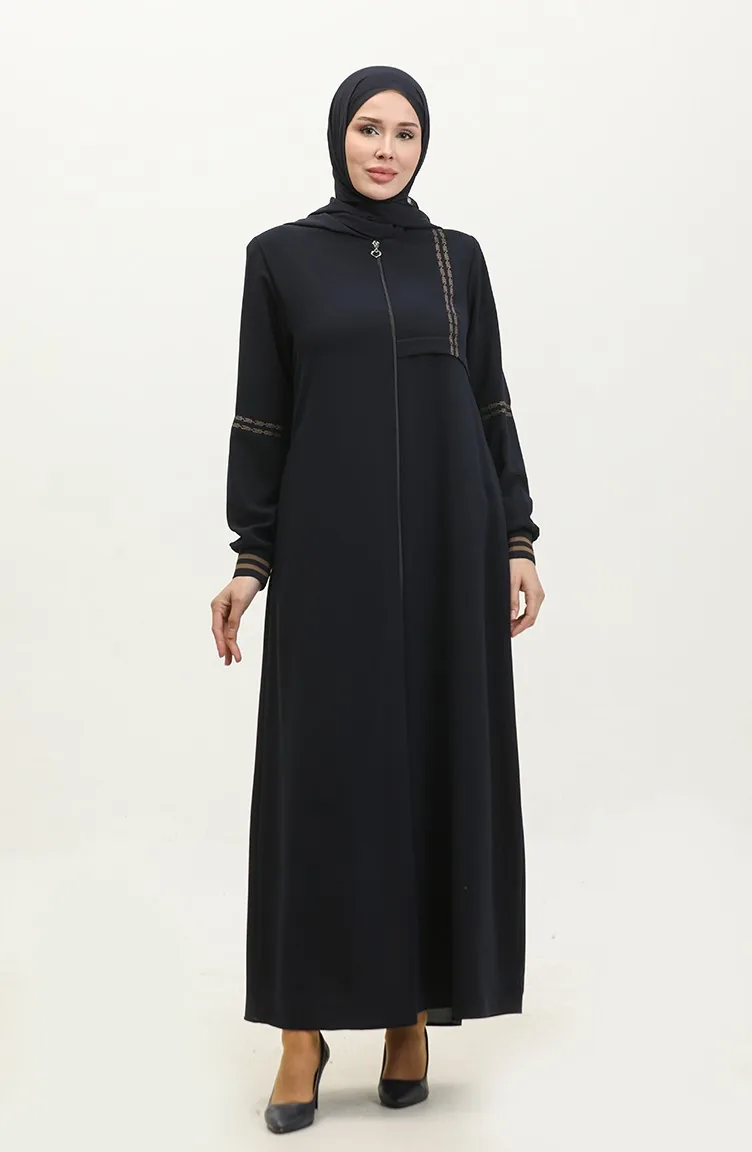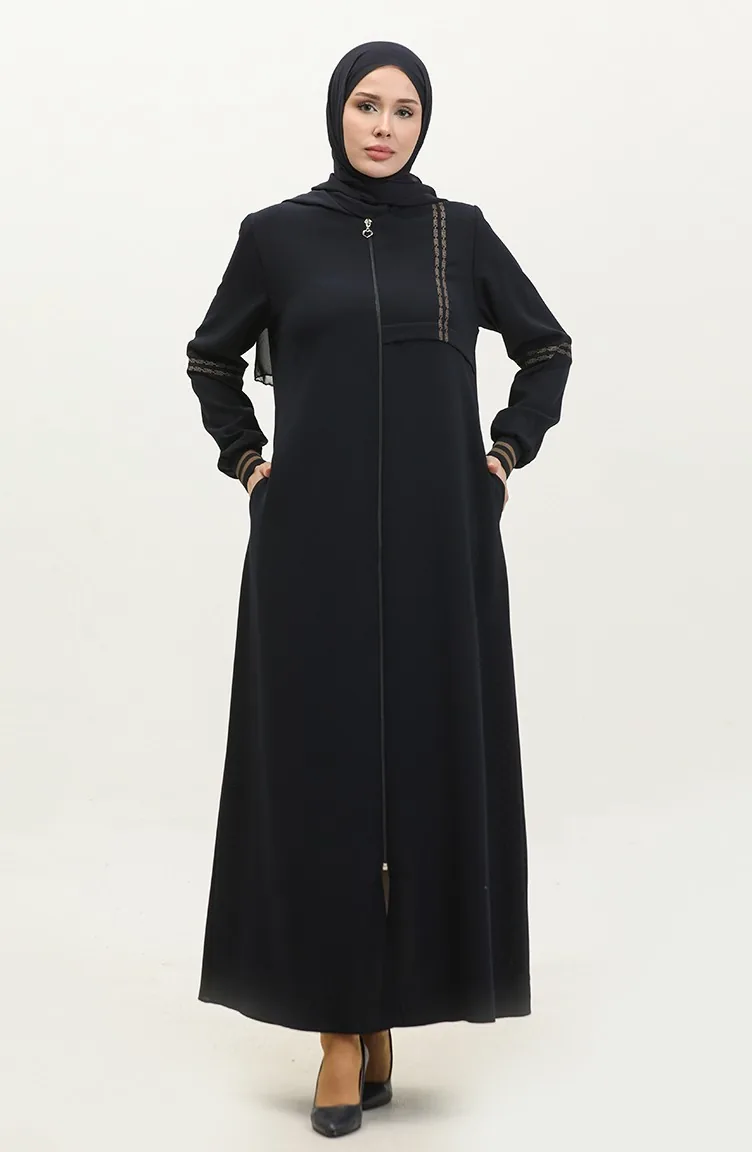 Abaya Côtelée A Fermeture Grande Taille 5064-02 Bleu Marine 5064-02
