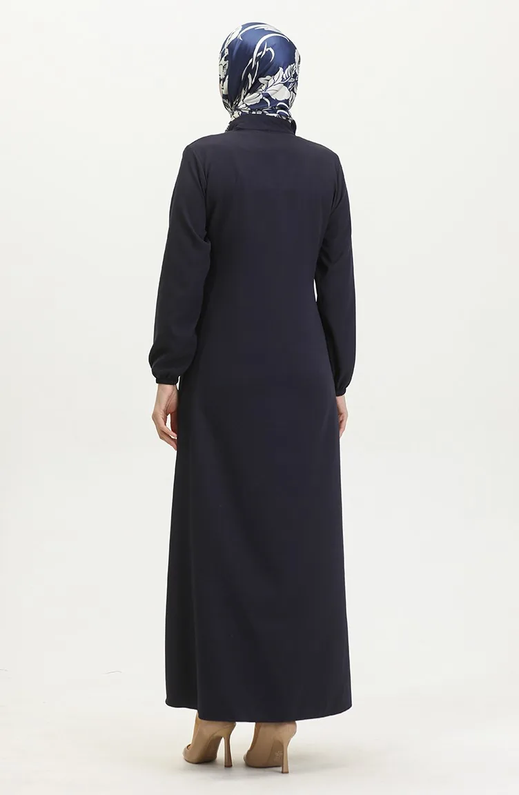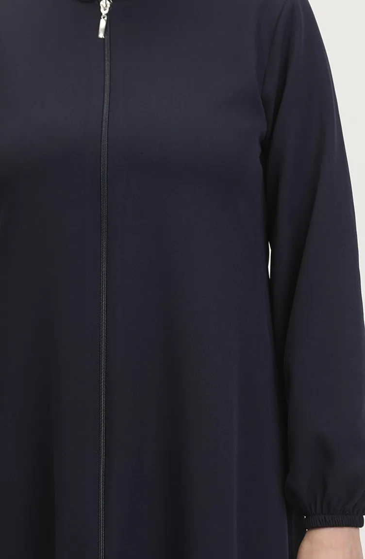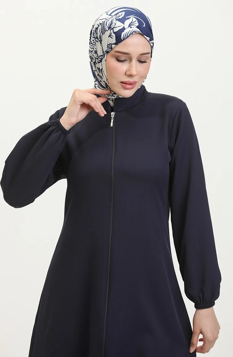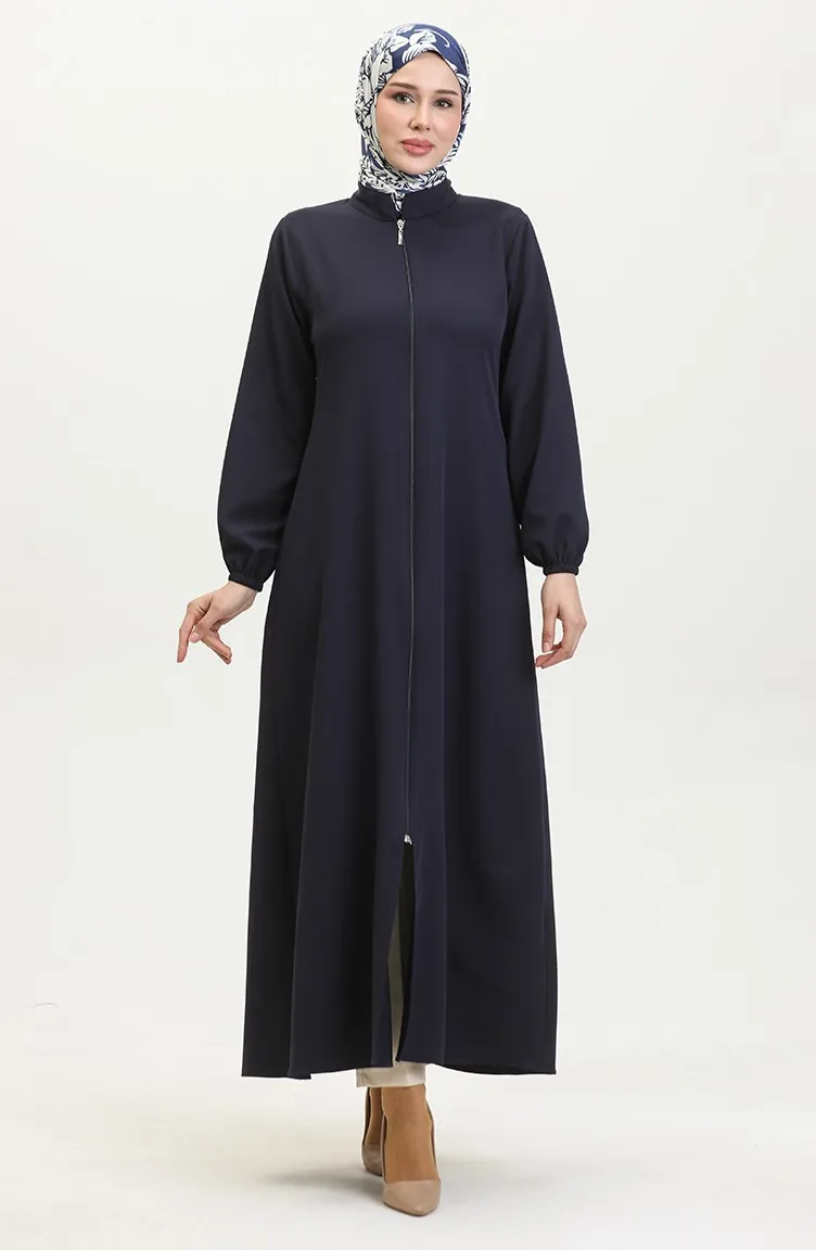 Abaya Plaine A Fermeture Et Extrémité Des Manches Elastiques 1013-03 Bleu Marine 1013-03