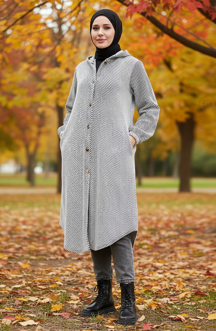 Couleur Orange. Tissu polyester. A Rayures. Avec boutons. Manches élastiques. Hivernal. Option de grande taille disponible.