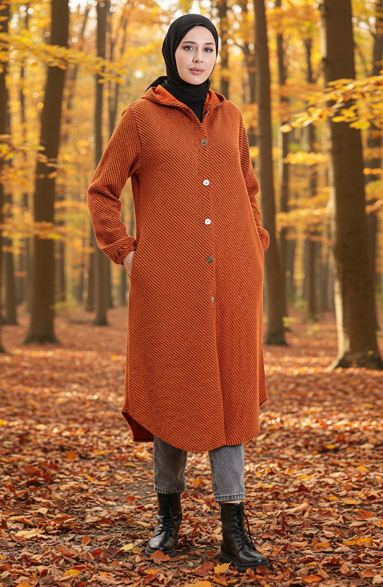 Manteau En Cachemire à Capuche Et Boutons 0201-08 Orange 0201-08