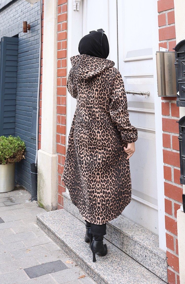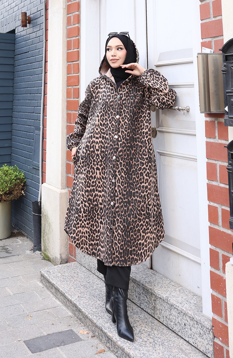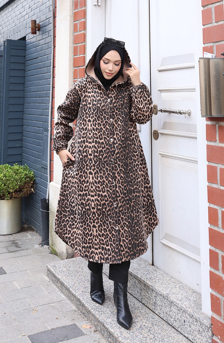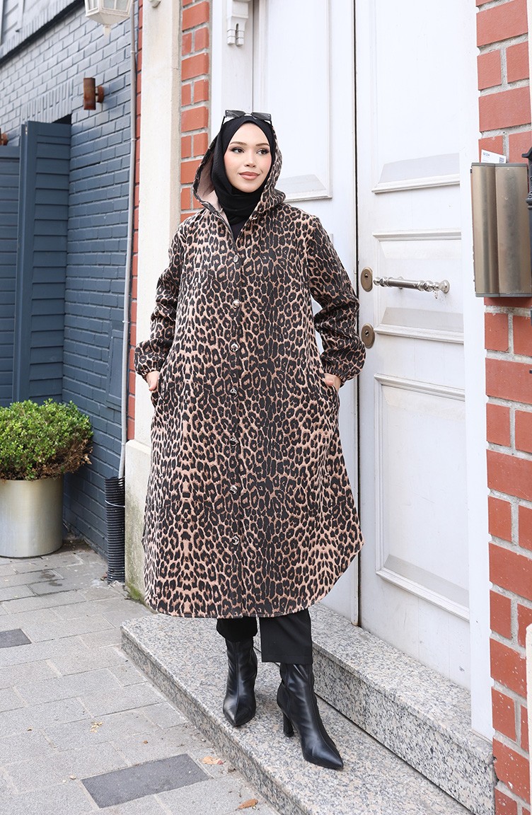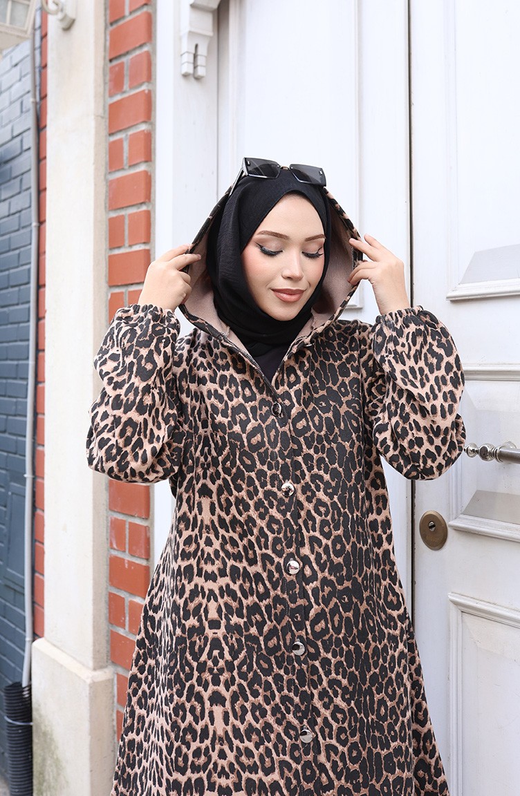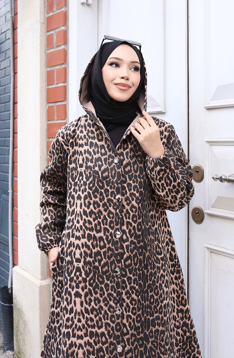Manteau En Cachemire à Capuche Et Boutons Motif Léopard Noir Et Marron 0226-02 0226-02