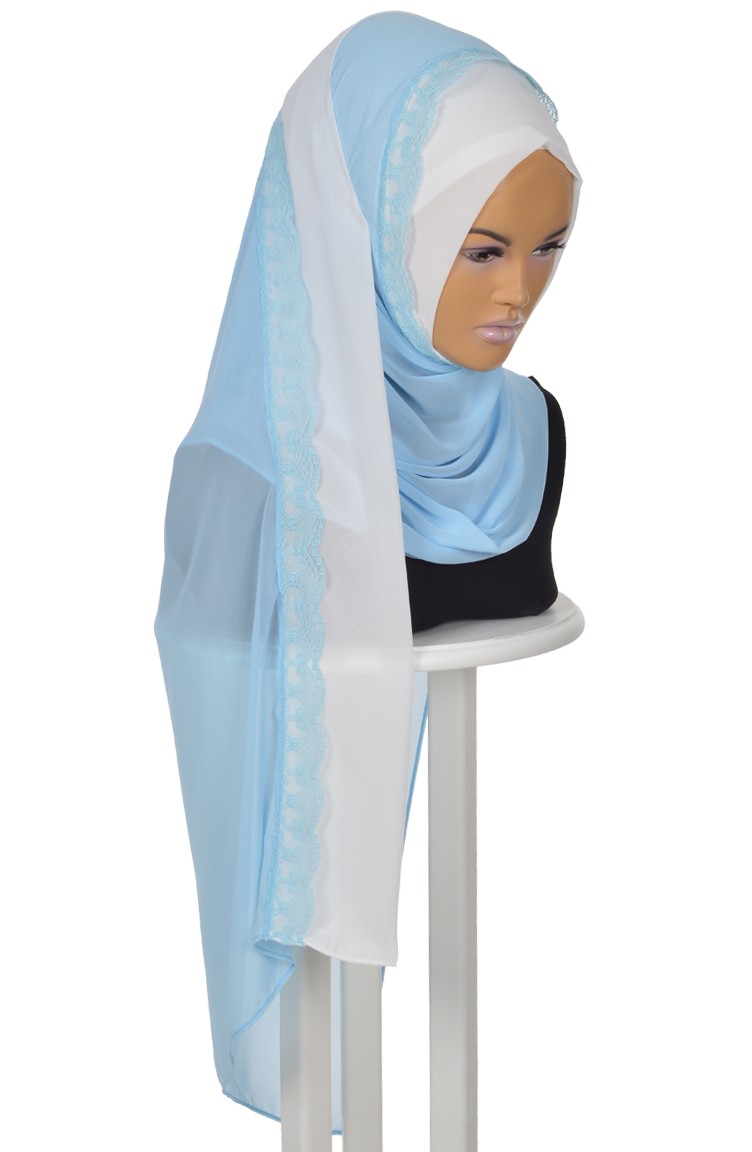 Châle Mousseline Pratique a Dentelle Blanc Cassé-Bleu Bébé PS0023-24-27 0023-24-27
