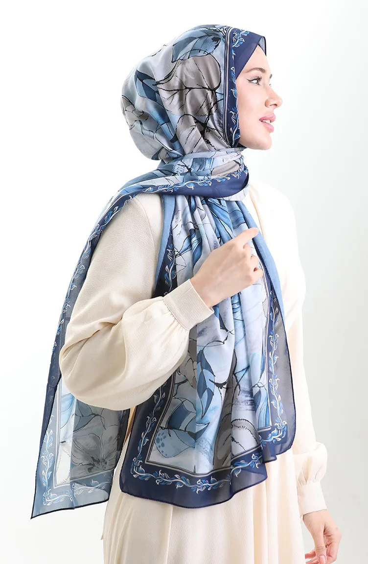 Châle En Soie Française Hanzade 70330-08 Bleu Marine Indigo 70330-08