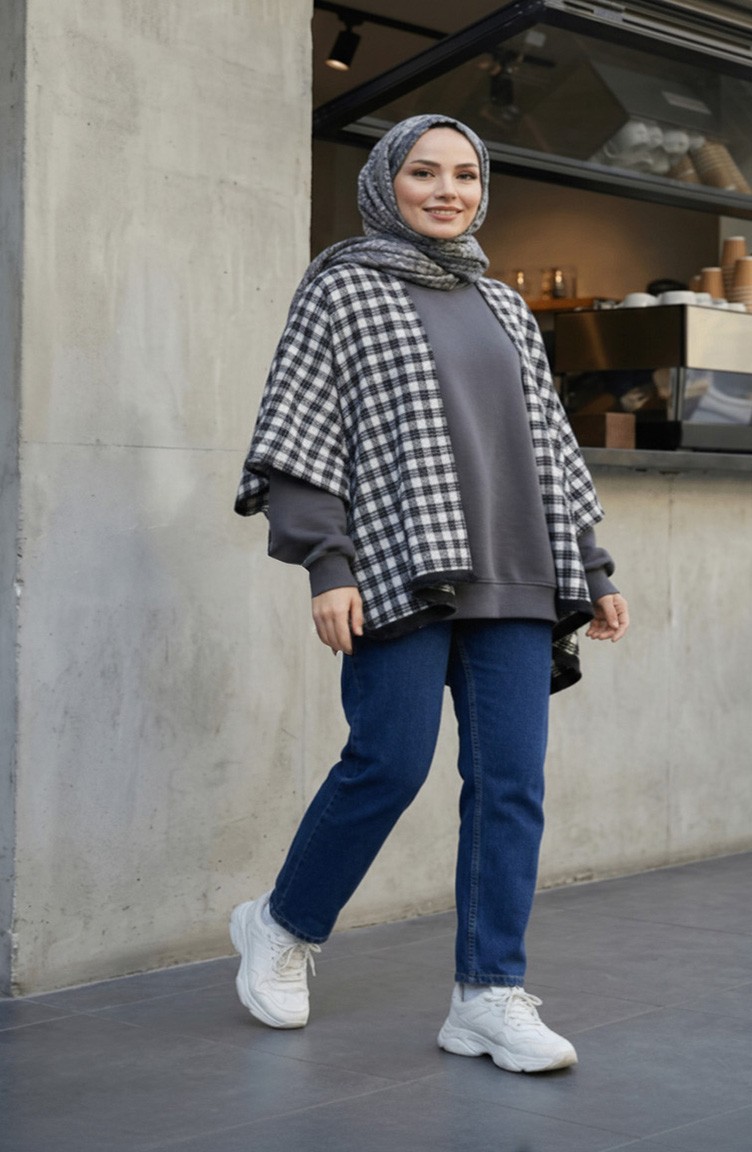 Couleur Noire. Tissu de coton. Tissu à motifs. Hivernal. Produit porté par le mannequin est sa propre taille.