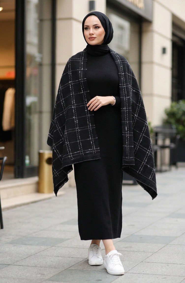 Couleur Noire. Tissu de coton. Tissu à motifs. Hivernal. Taille standard.