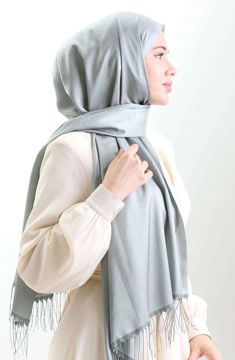 Châle Long à Franges En Viscose 70331-01 Vert Amande 70331-01