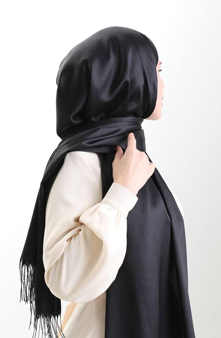 Châle Long à Franges En Viscose 70331-09 Noir 70331-09