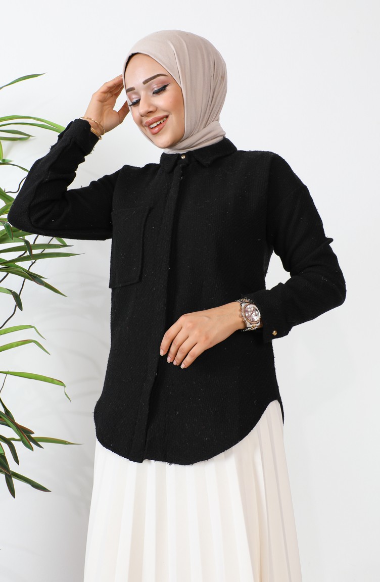 Chemise Tweed Avec Poche 60012-01 Noir 60012-01
