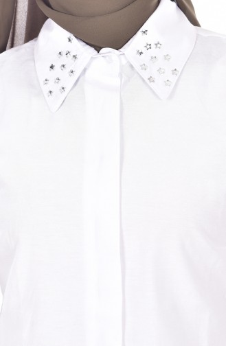 Col Chemise Perlées 8043F-01 Blanc 8043F-01