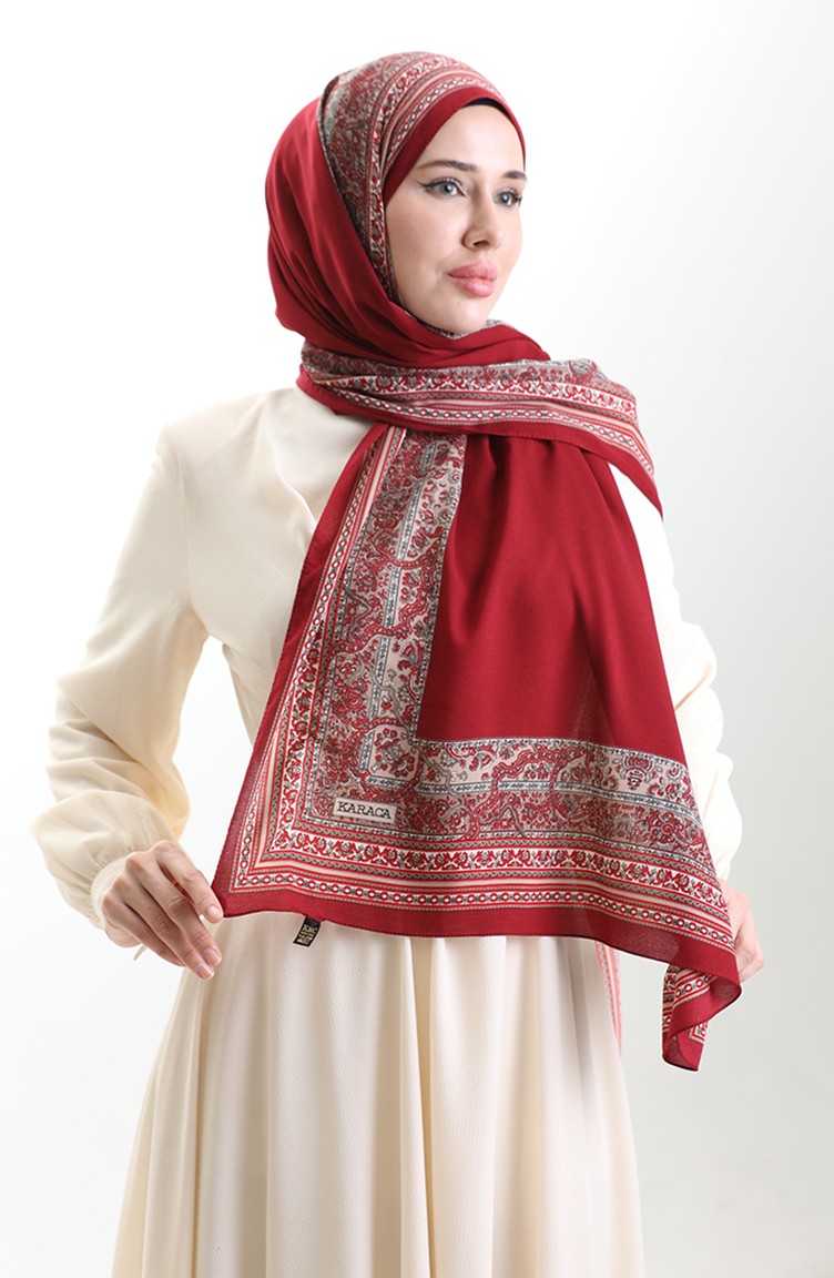 Châle Mio à Motifs Karaca 82012-08 Rouge Bordeaux 82012-08