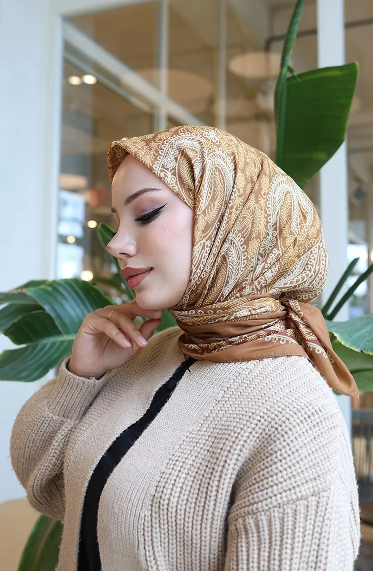 Écharpe Cocon En Coton à Motifs 70337-04 Moutarde Foncée 70337-04