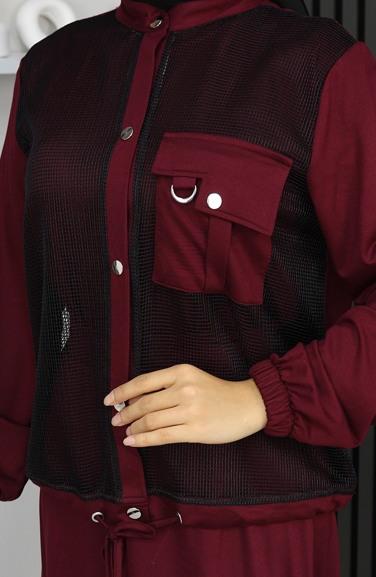 Couleur bordeaux. C'est un tissu filet. Simple. A Bouton-Pression. Col officier. Adapté pour les 4 saisons. Produit porté par le mannequin est sa propre taille.