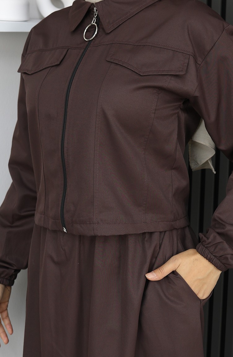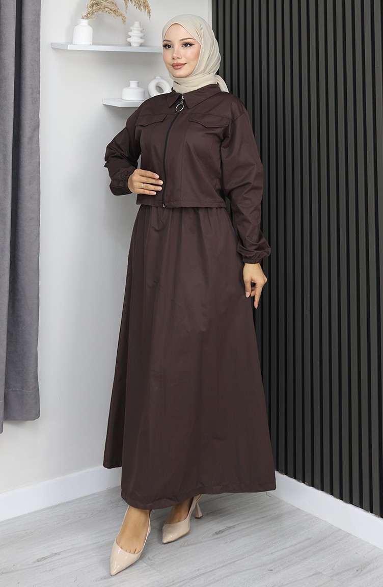 Ensemble Veste Et Jupe Deux Pièces Marron 0184-03 0184-03