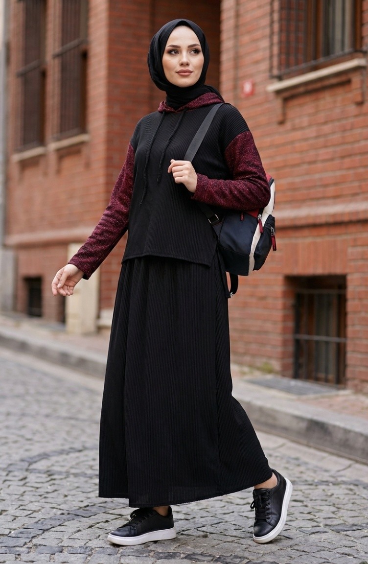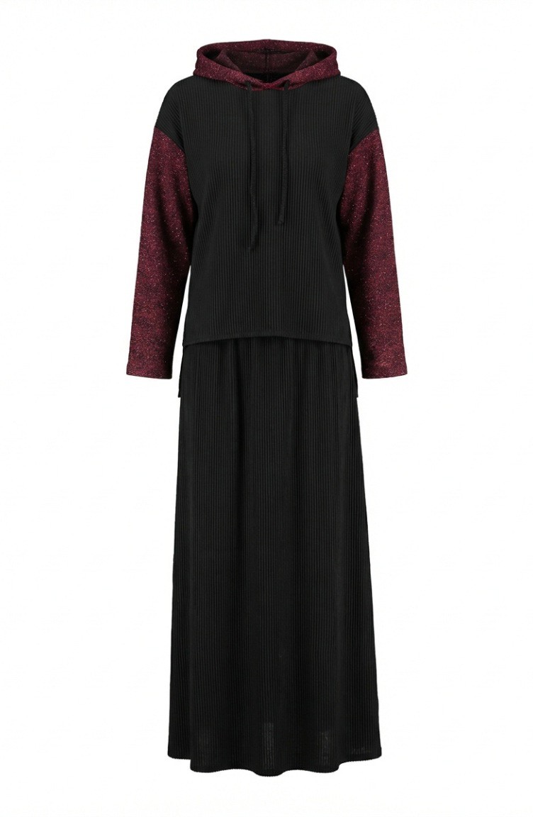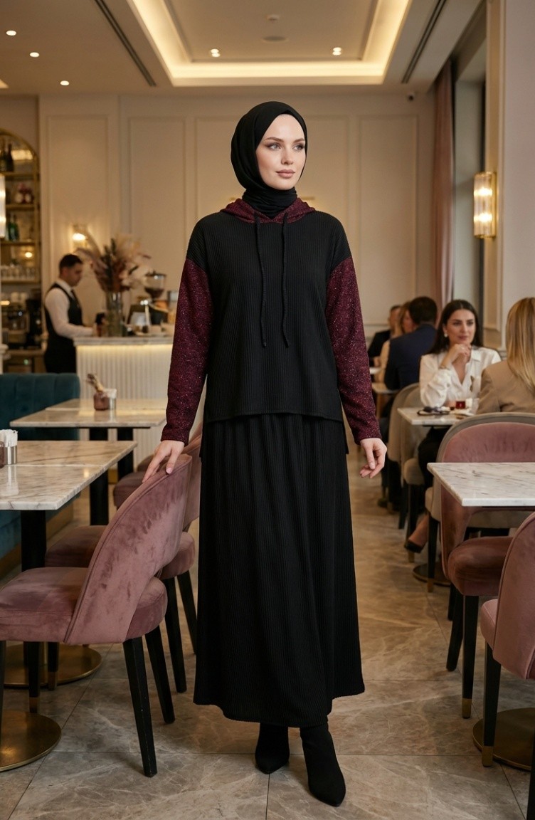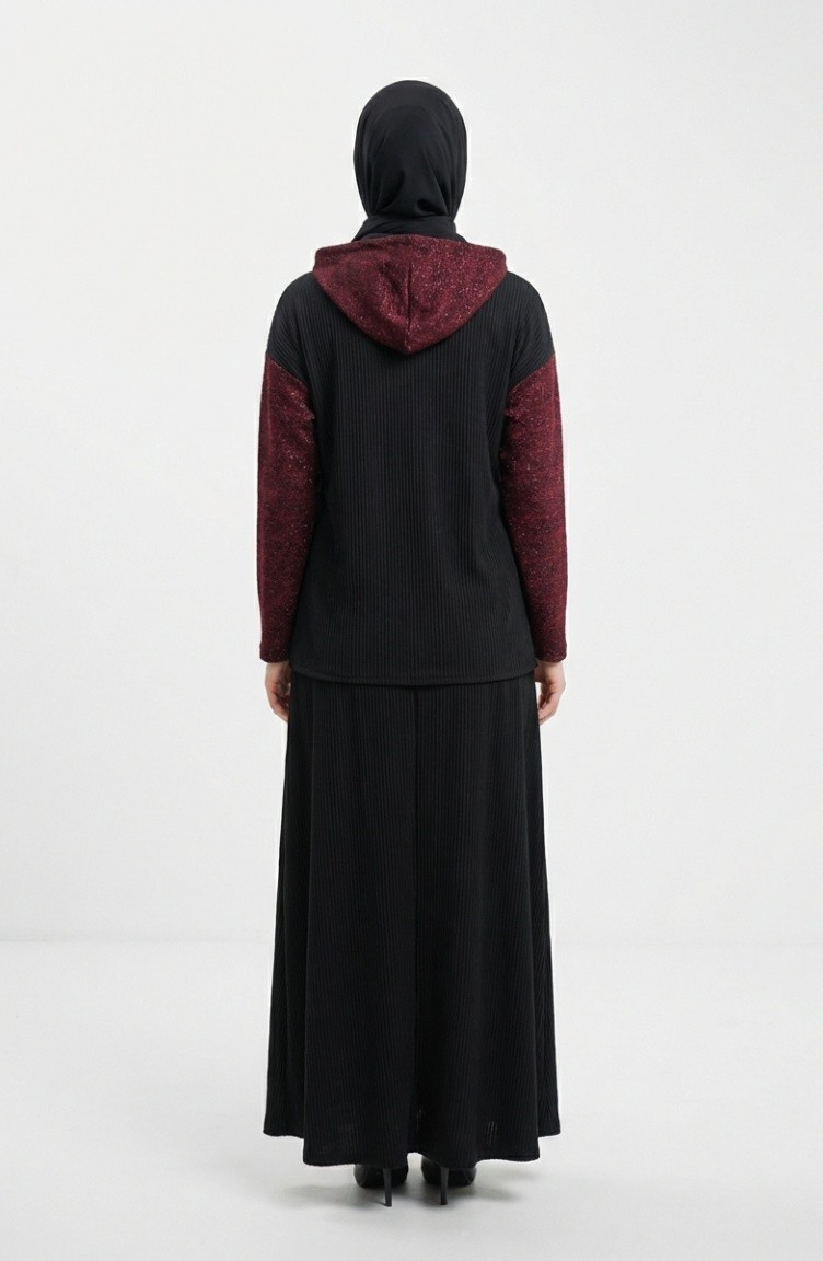 Ensemble Deux Pièces à Capuche Sim Detail 2221-03 Noir Bordeaux 2221-03
