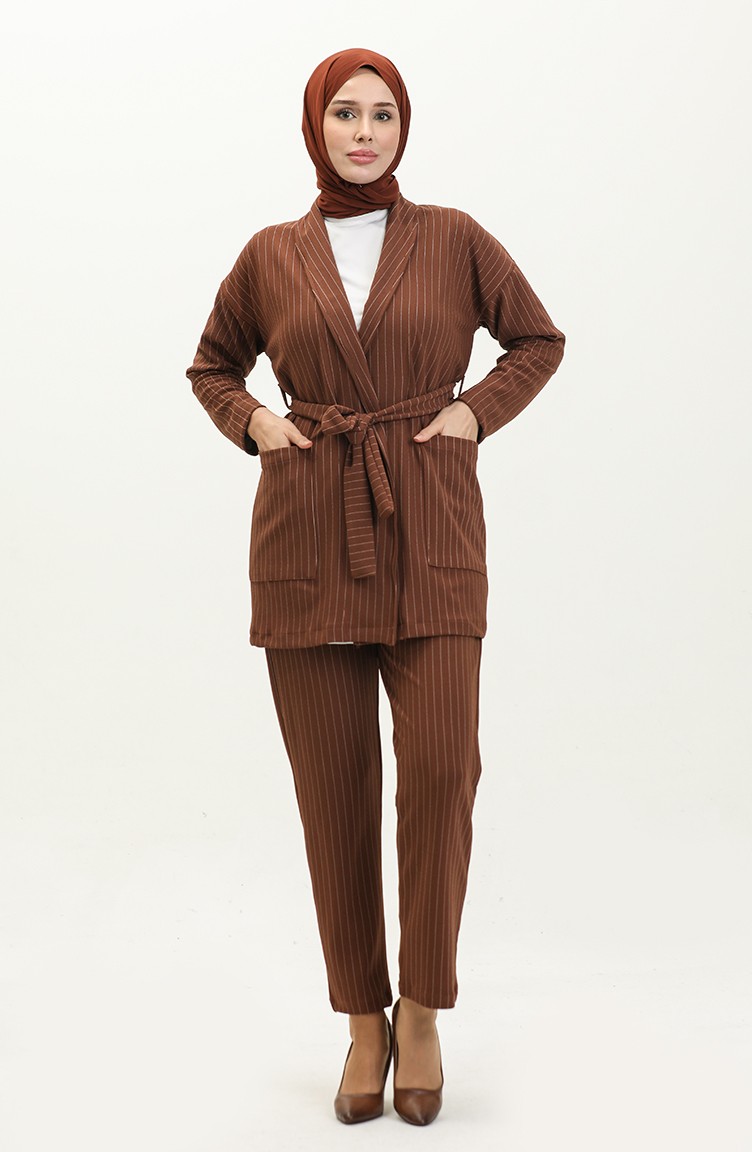Ensemble Deux Pieces Veste Pantalon A Rayure 24K9074-03 Tan 24K9074-03