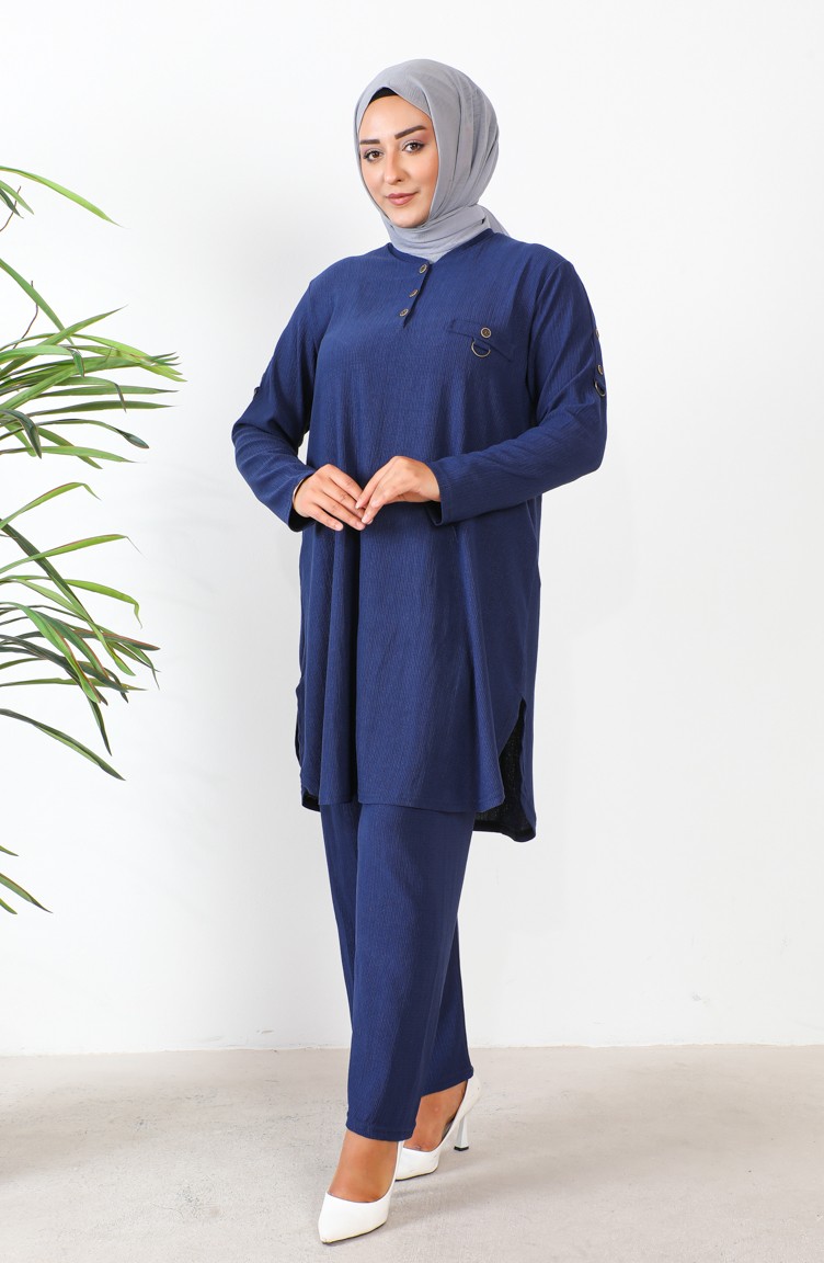Ensemble Double Pantalon Tunique Grande Taille 2691-10 Bleu Marine 2691-10