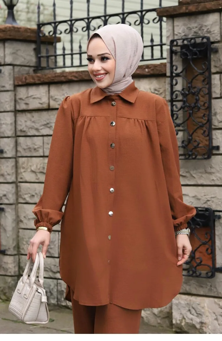 Rassemblement D`un Costume Marron Hijab Détaillé 402