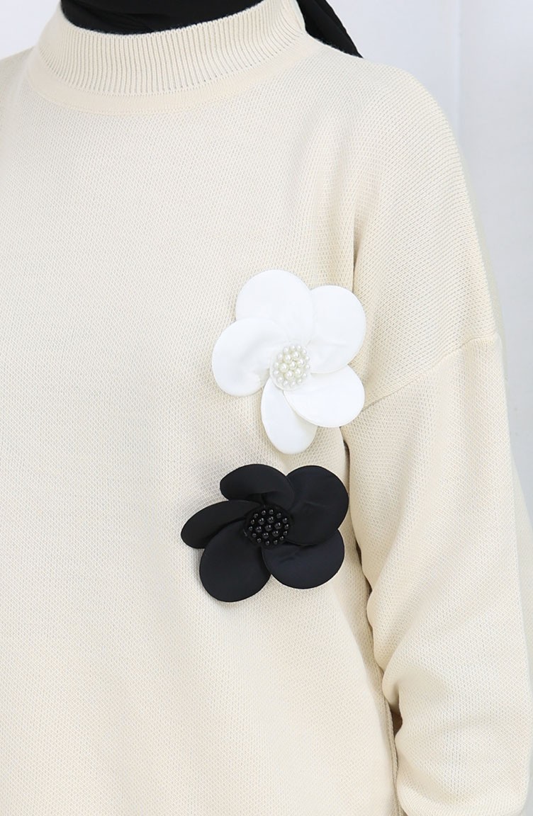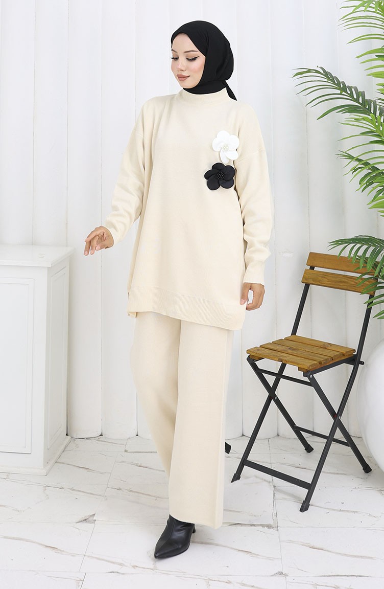 Ensemble Deux Pièces En Tricot Col Roulé Tunique Et Pantalon 1015-04 Beige 1015-04