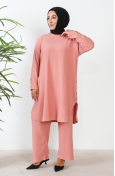Ensemble Deux Pièces Tunique Et Pantalon à Strass Grande Taille 2658-03 Poudre 2658-03