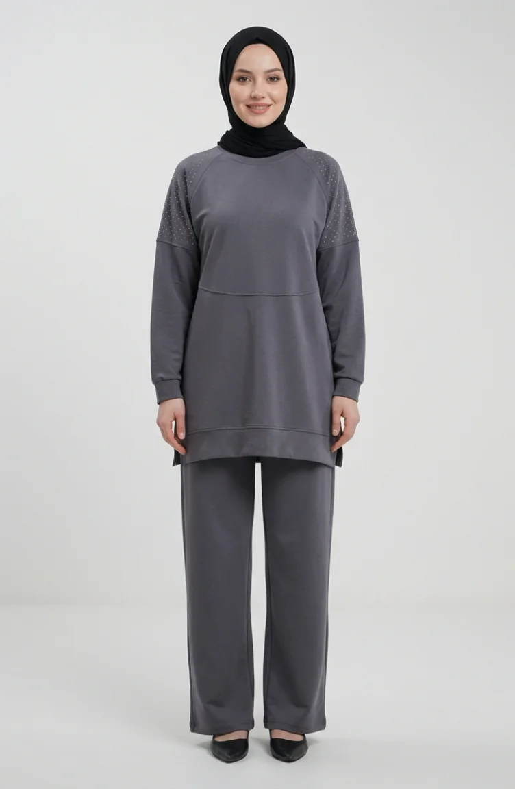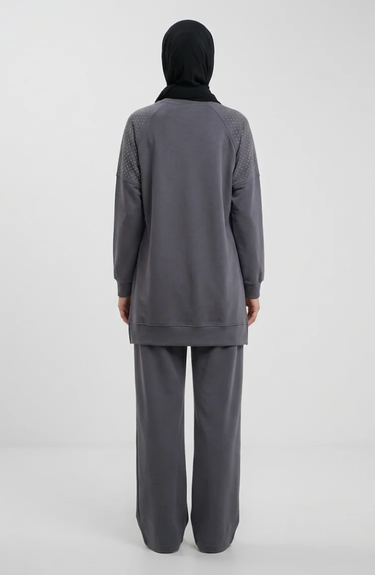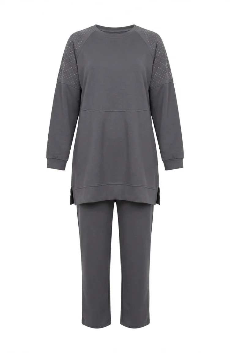 Ensemble Deux Pièces En Tissu Oysho Orné D`épaules 0240-04 Anthracite 0240-04