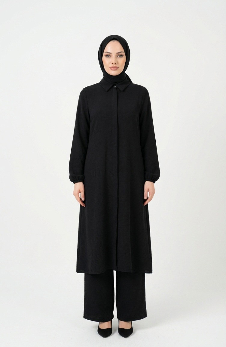 Ensemble Deux Pièces Tunique Et Pantalon En Tissu Aerobin 4142-04 Noir 4142-04