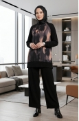 Ensemble Deux Pièces Tunique Plissée Imprimée Et Pantalon 2215-03 Saumon Noir 2215-03