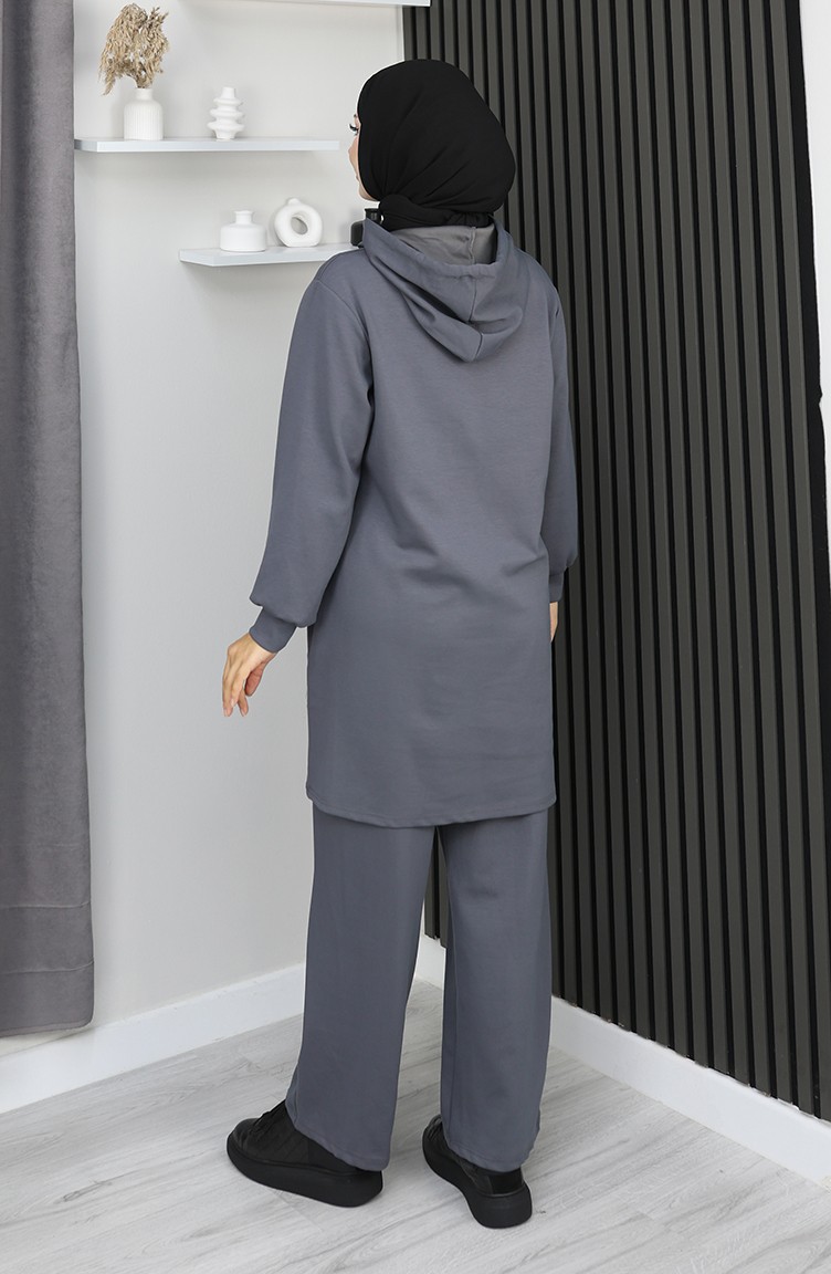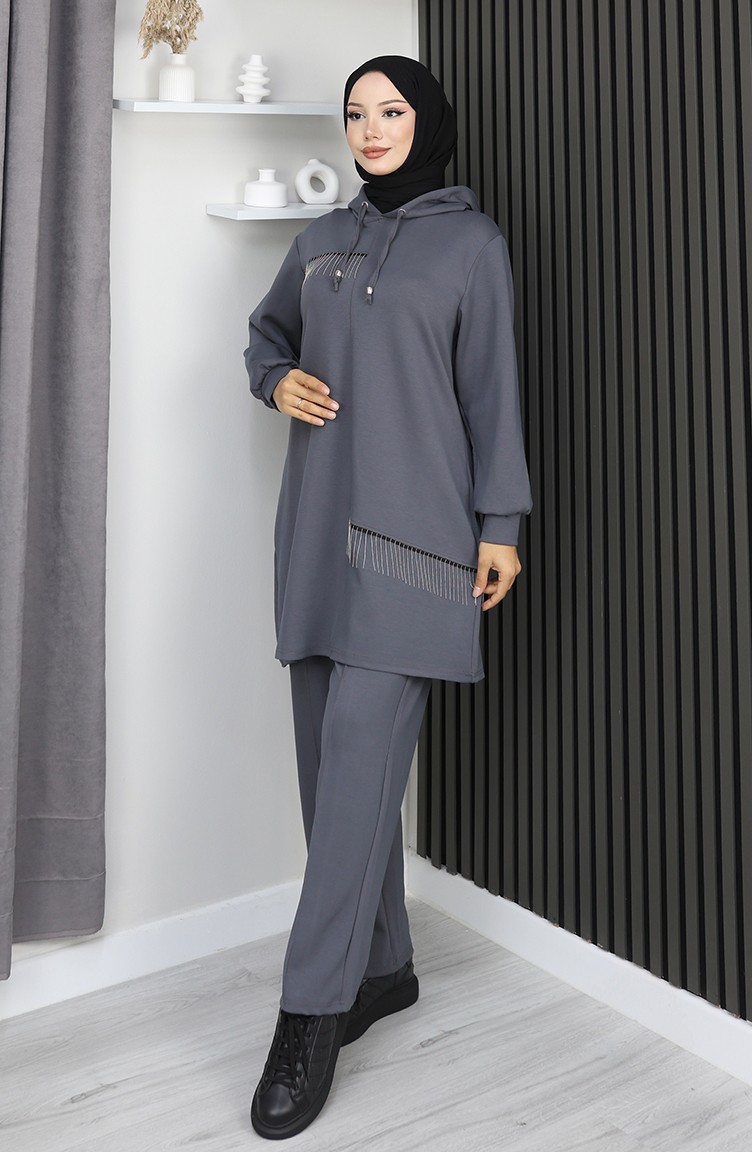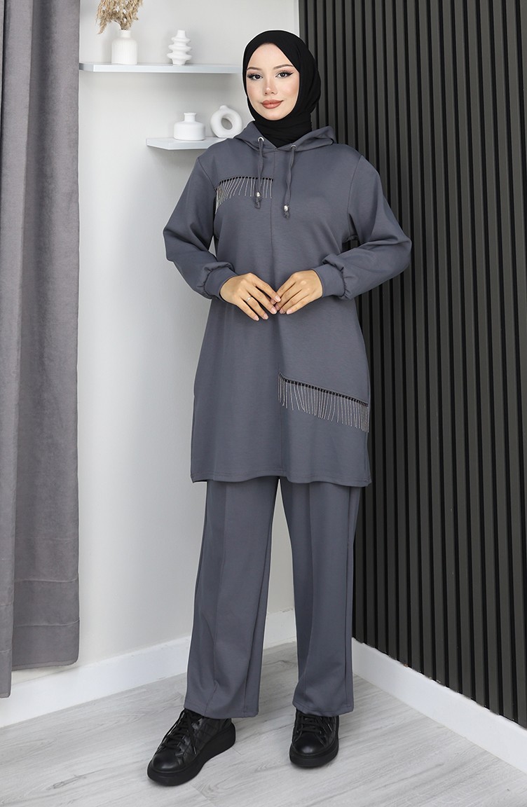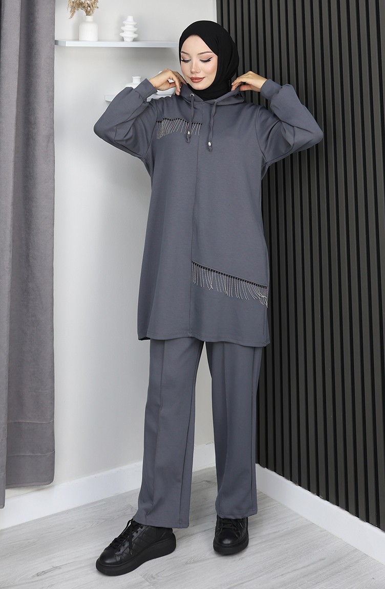 Ensemble Hijab Deux Pièces Oysho En Tissu Avec Chaînette Détaillée 0212-02 Anthracite 0212-02