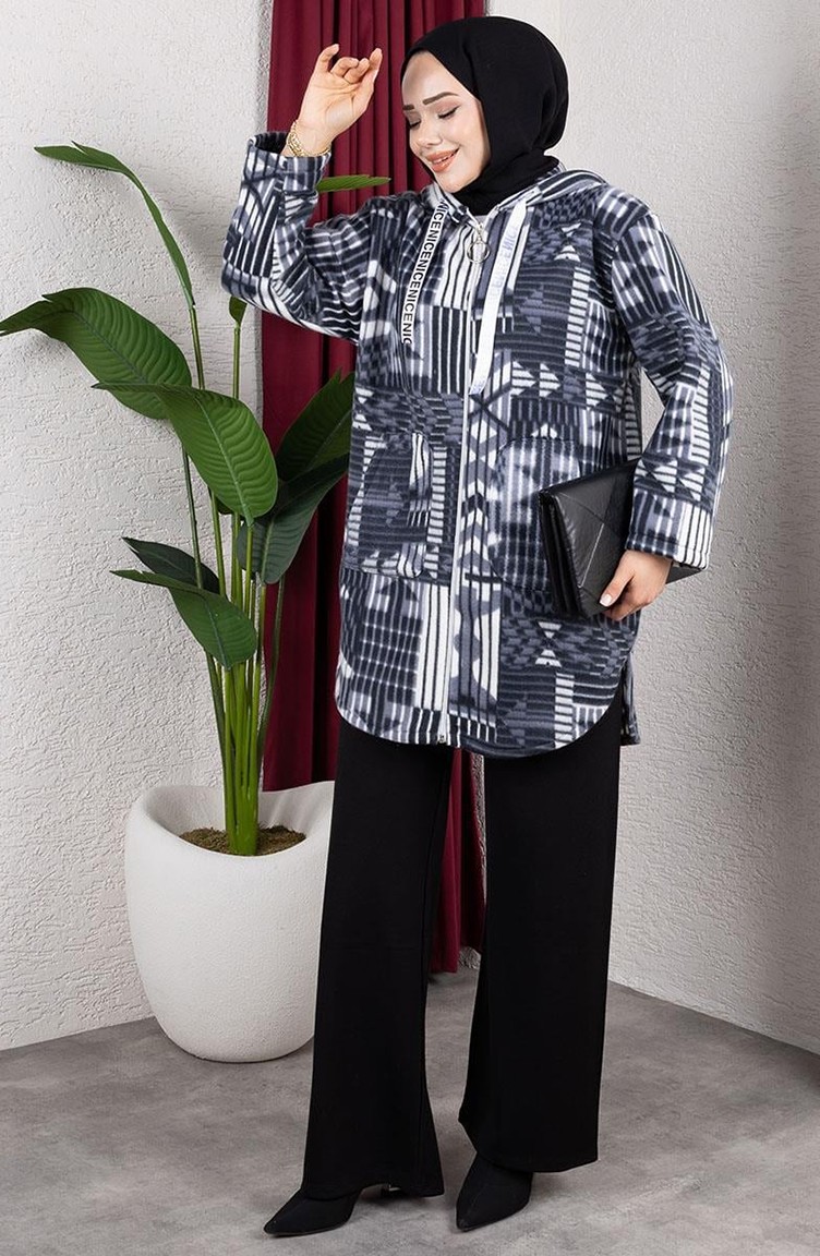 Gilet En Peluche à Capuche à Motifs 2062-04 Anthracite 2062-04
