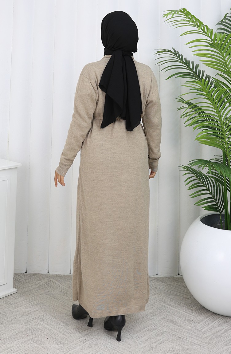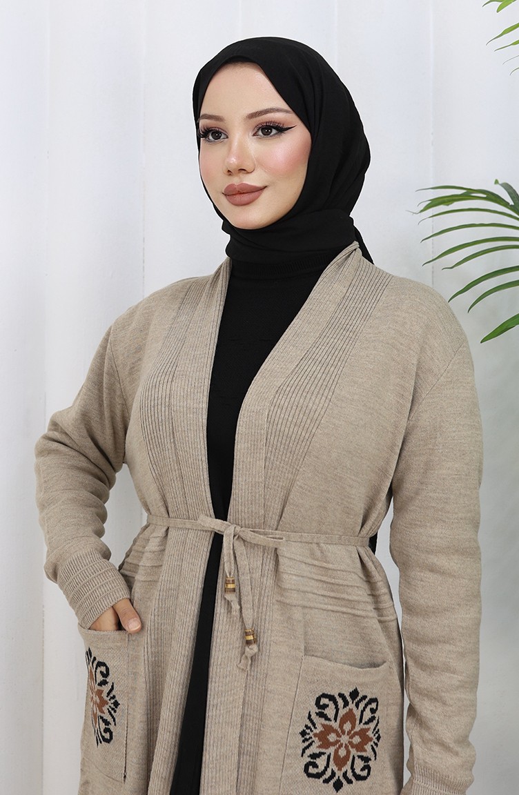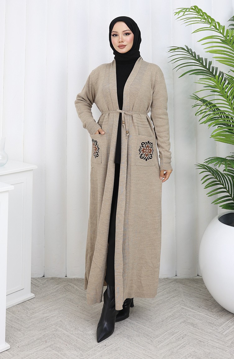 Cardigan Long Brodé En Maille 0022-02 Beige 0022-02